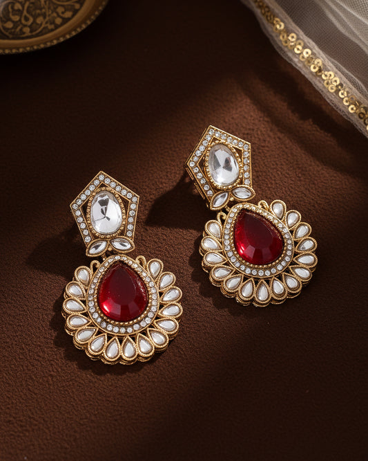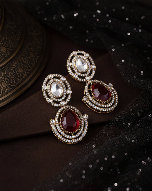 Red Hania Premium Designer Zircone Polki Dupe Earring
