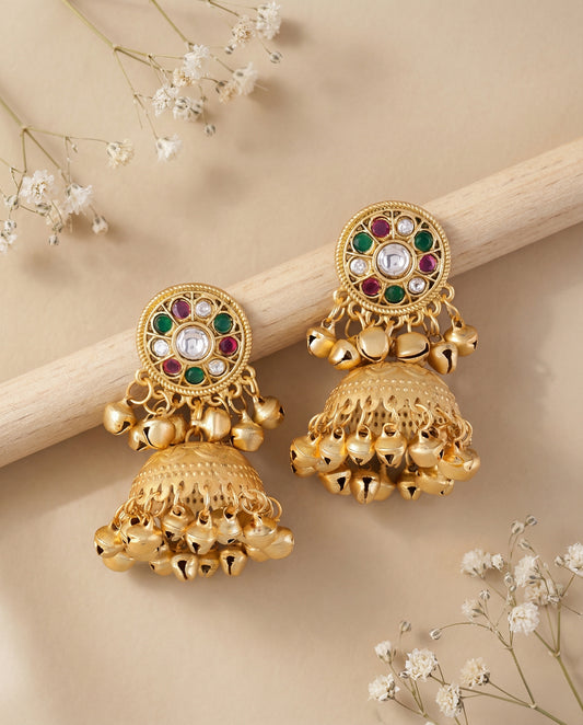 Green Multi Dhairya Kashmiri Look Ghunghru Jhumka Earring