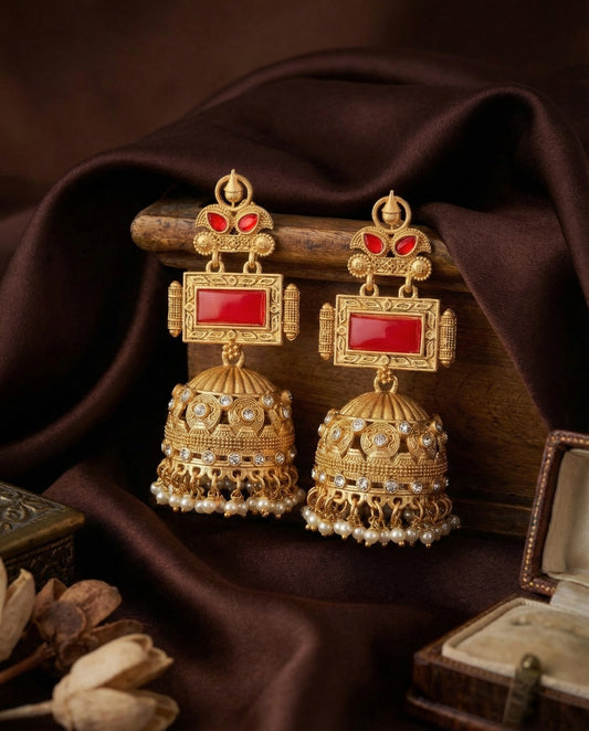 Red Mrighosh Premium Kashmiri Brass Lookalike Jhumka Earring