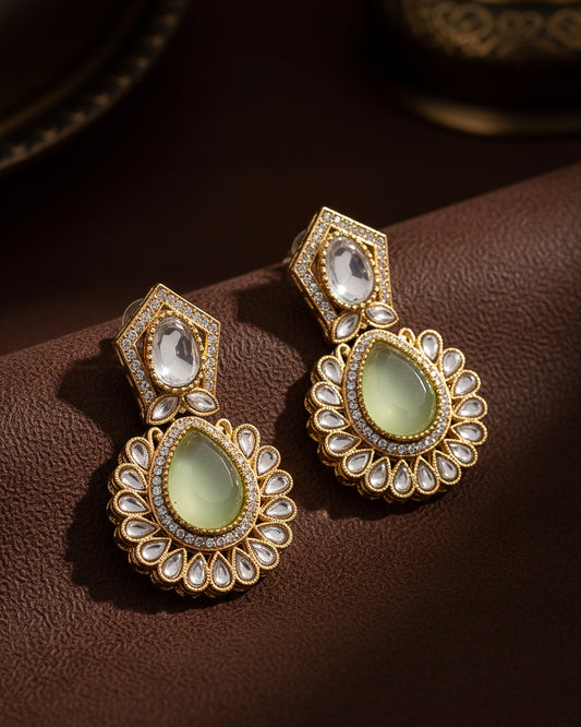 Teal Green Hania Premium Designer Zircone Polki Dupe Earring