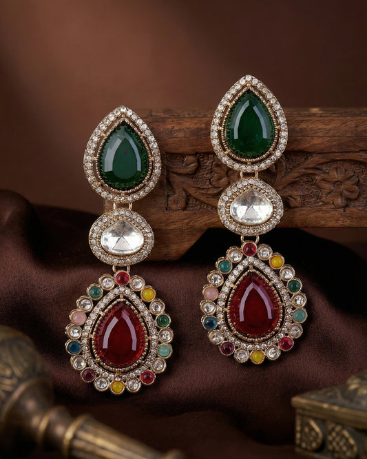 Multi Amani Premium Designer Zircone Polki Dupe Earring