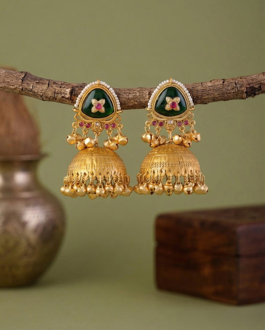 Green Ekansh Kashmiri Look Ghunghru Jhumka Earring