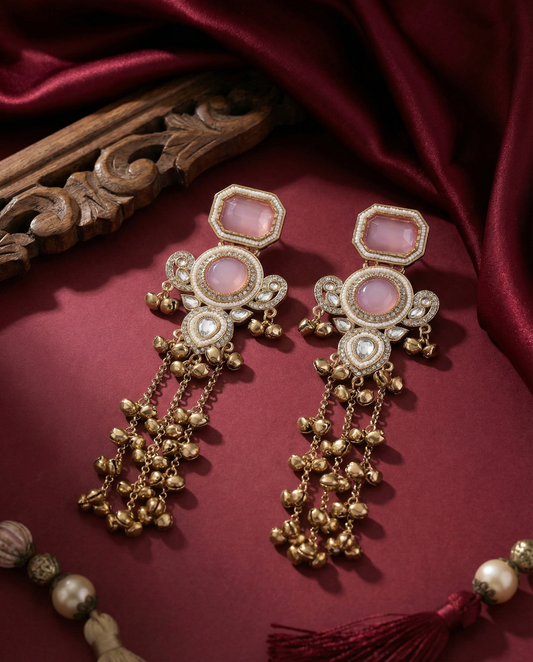Pink Zavian Kashmiri Look Ghunghru Jhumka Earring