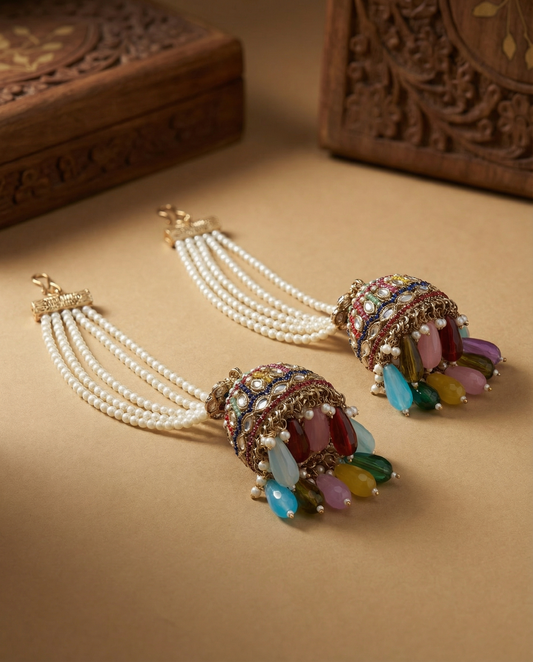 Pearl Aayat Bahubali Jhumka with Statement Kaan Chain and Teeka