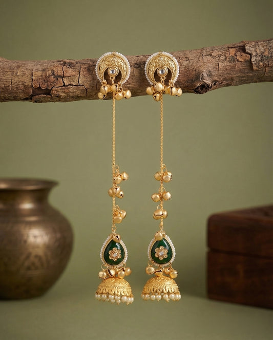 Green Zavian Kashmiri Look Ghunghru Jhumka Earring