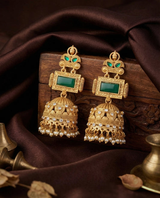 Green Mrighosh Premium Kashmiri Brass Lookalike Jhumka Earring