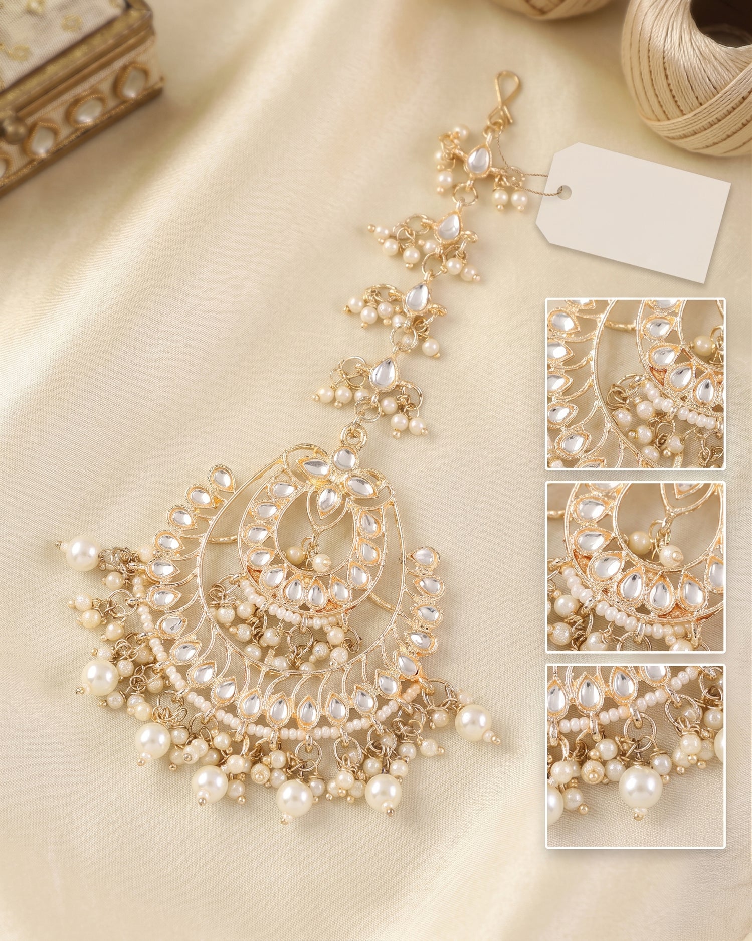 Pearl Avreet Mirror Bahubali Jhumka with Statement Kaan Chain and Teeka