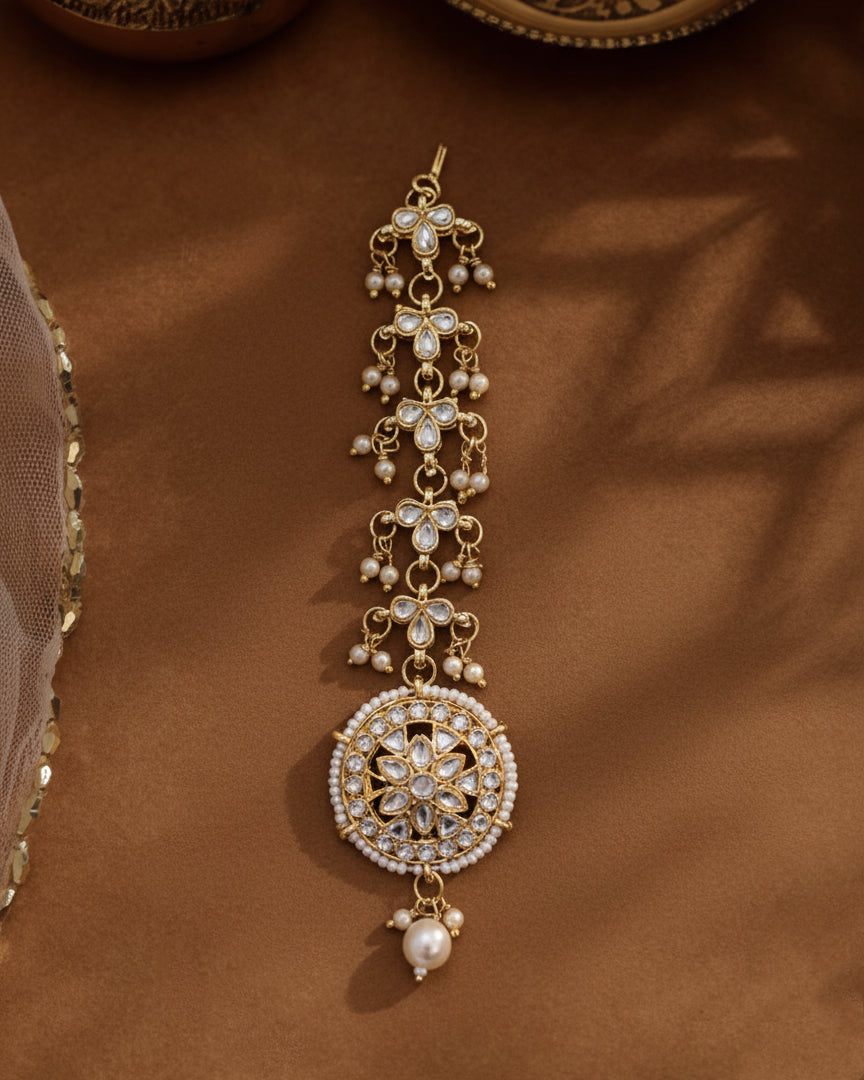 Pearl Upneet Premium Polki Dupe Necklace with Earring and Teeka