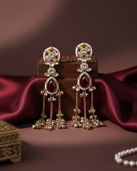 Red Multi Nakul Kashmiri Look Ghunghru Earring