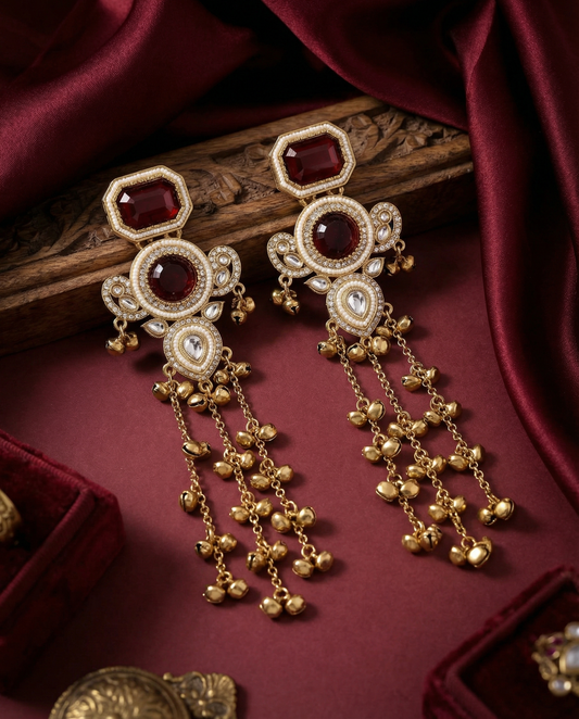 Red Zavian Kashmiri Look Ghunghru Jhumka Earring