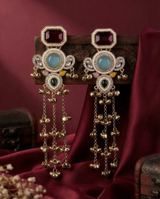 Multi Sharain Kashmiri Look Ghunghru Jhumka Earring
