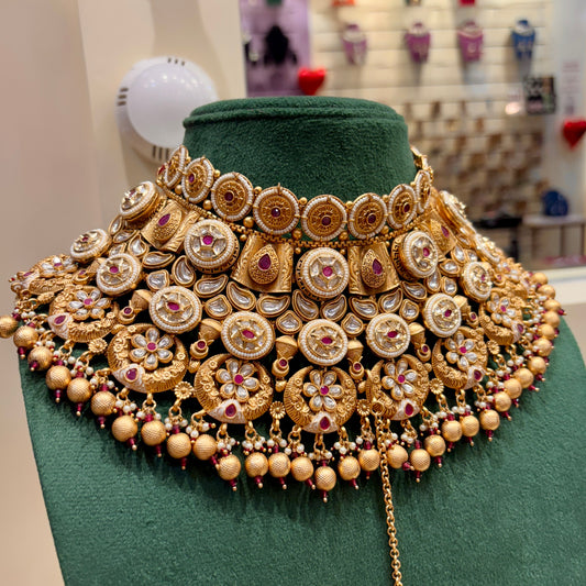 Ruby Hania Premium Polki Dupe Necklace with Earring and Mangteeka