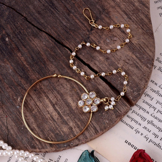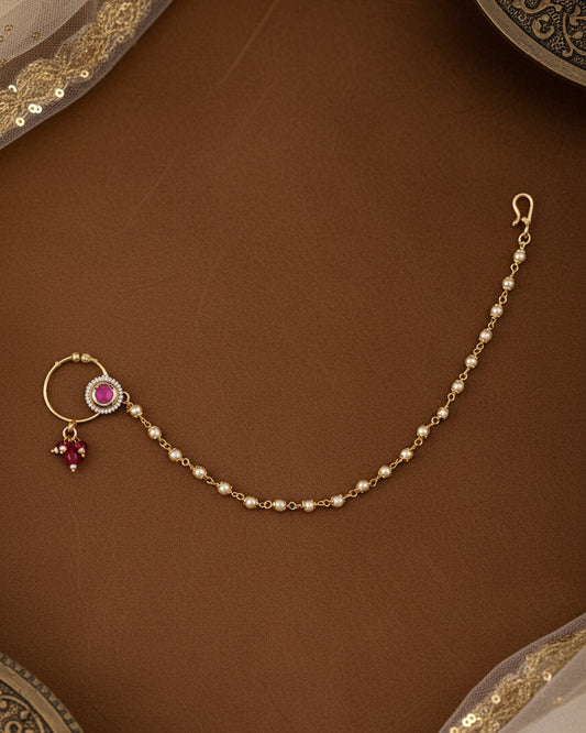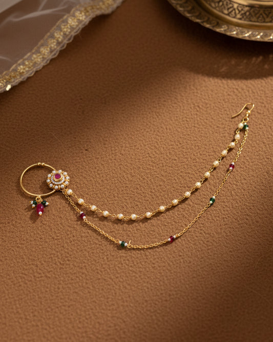 Ishara Bahubali Kundan Kaan Chain Pair