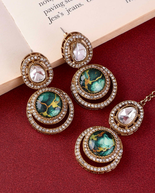 Green Sehnaz Mirror Necklace Earring & Maangteeka