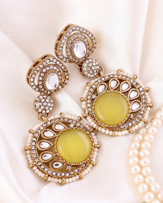 Yellow Zyra Premium Designer Zircone Polki Dupe Earring