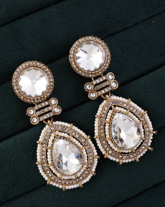 White Zyra Premium Designer Zircone Polki Dupe Earring