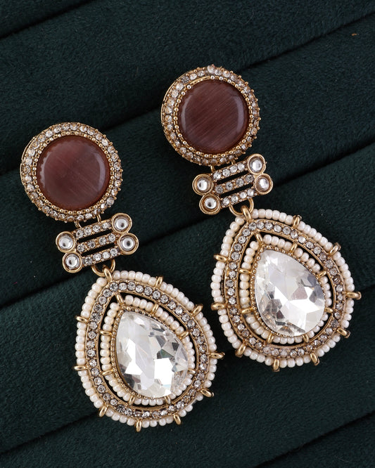 Wine Zyra Premium Designer Zircone Polki Dupe Earring