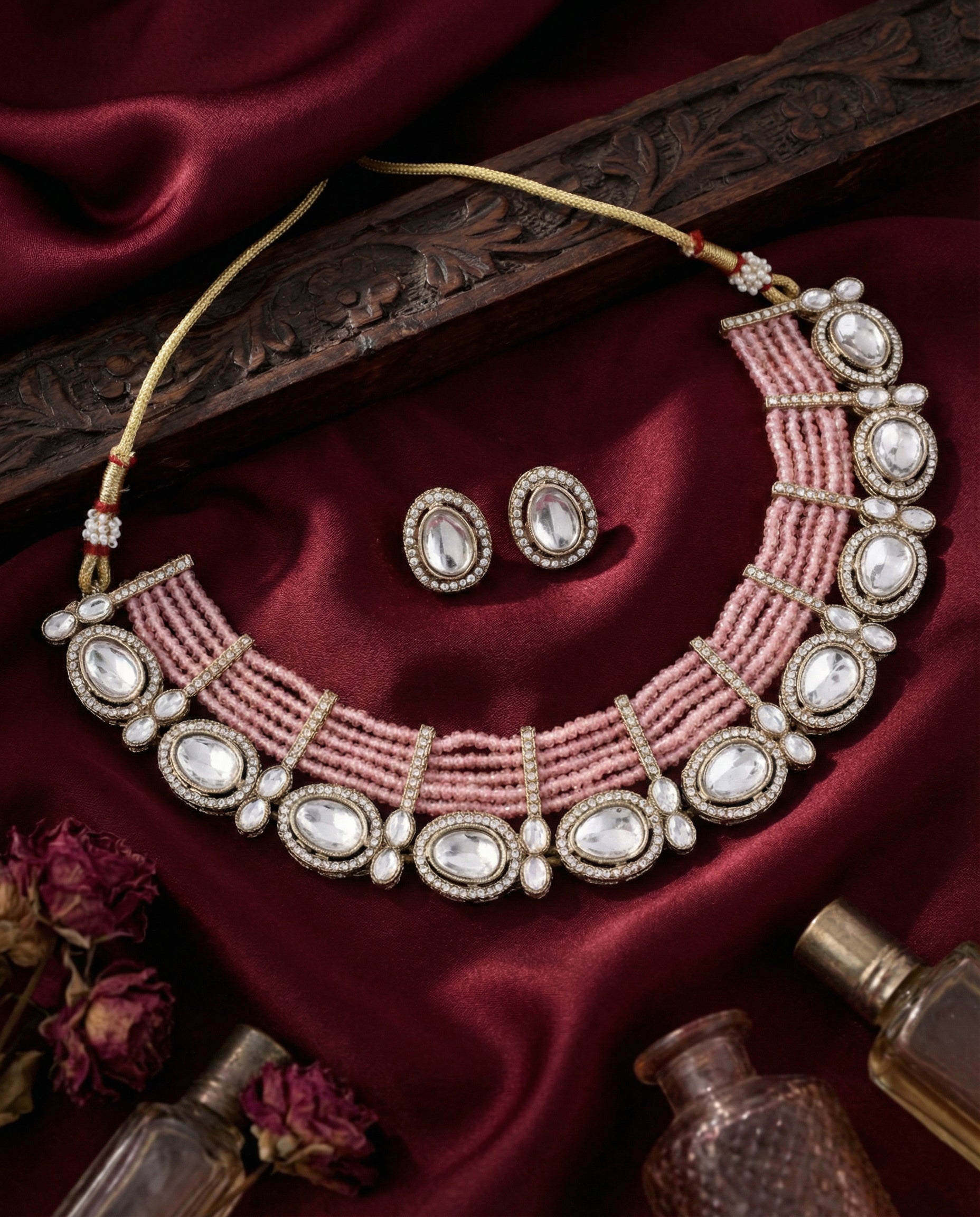 Blush Darvesh Zircone Polki Dupe Pearl Necklace with Earring