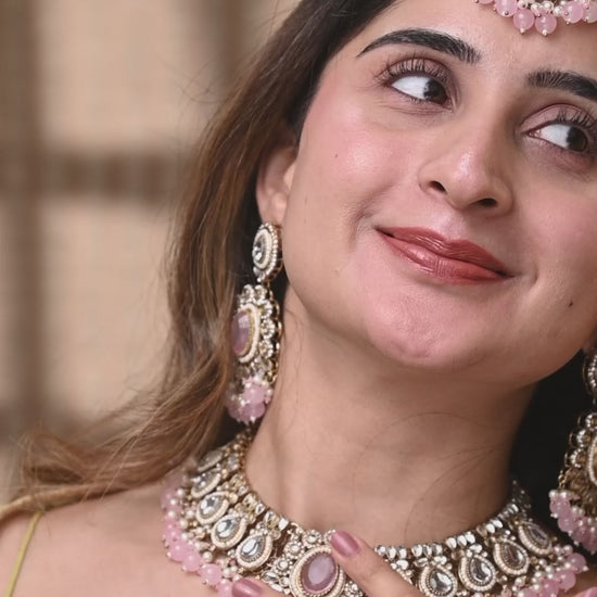 Blush Kavisha Premium Polki Dupe Necklace Set with Earring and Teeka