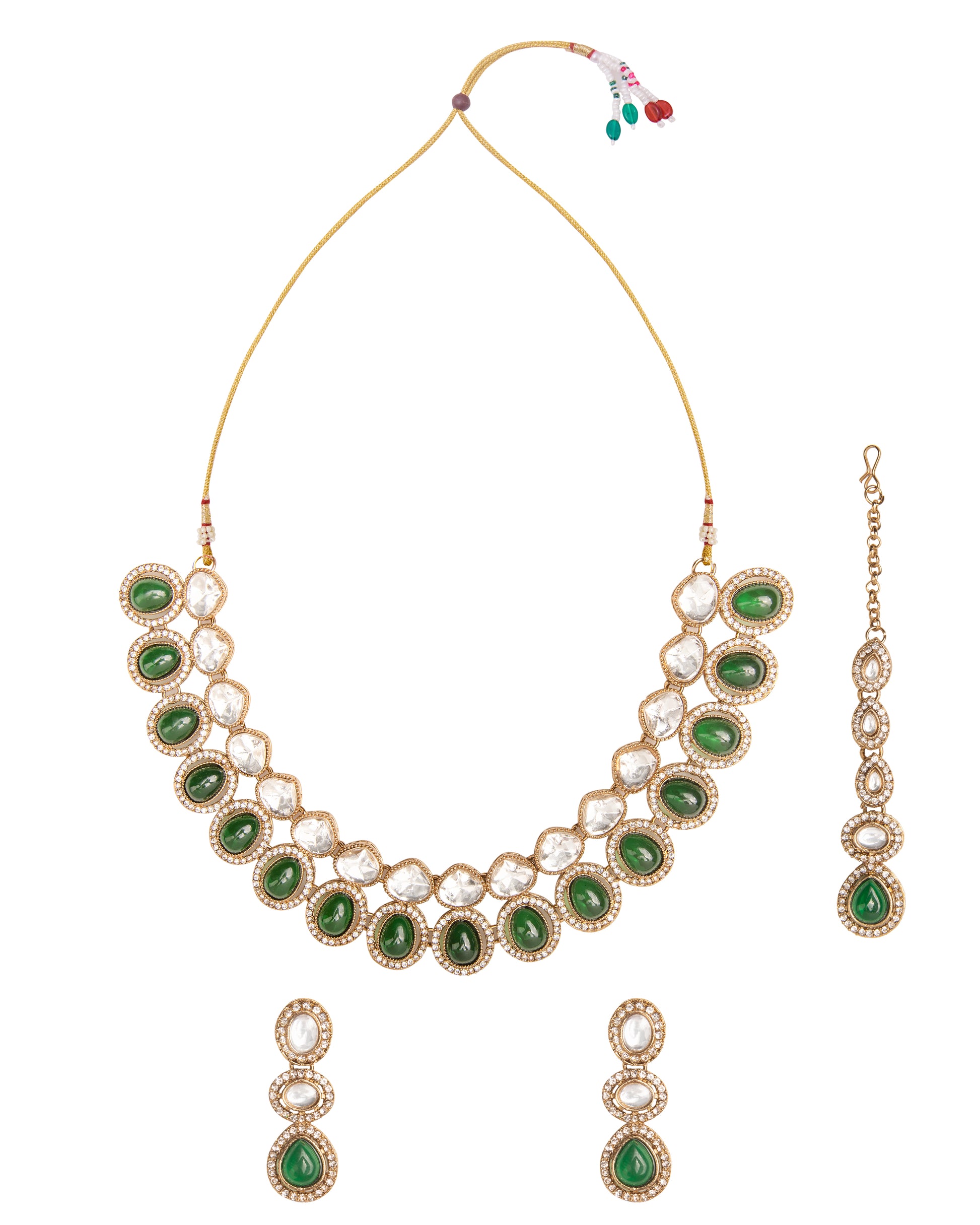 Emerald Arshiya Premium Polki Dupe Necklace with Earring and Teeka