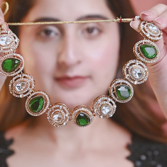 Ruby Hania Premium Polki Dupe Necklace with Earring and Mangteeka
