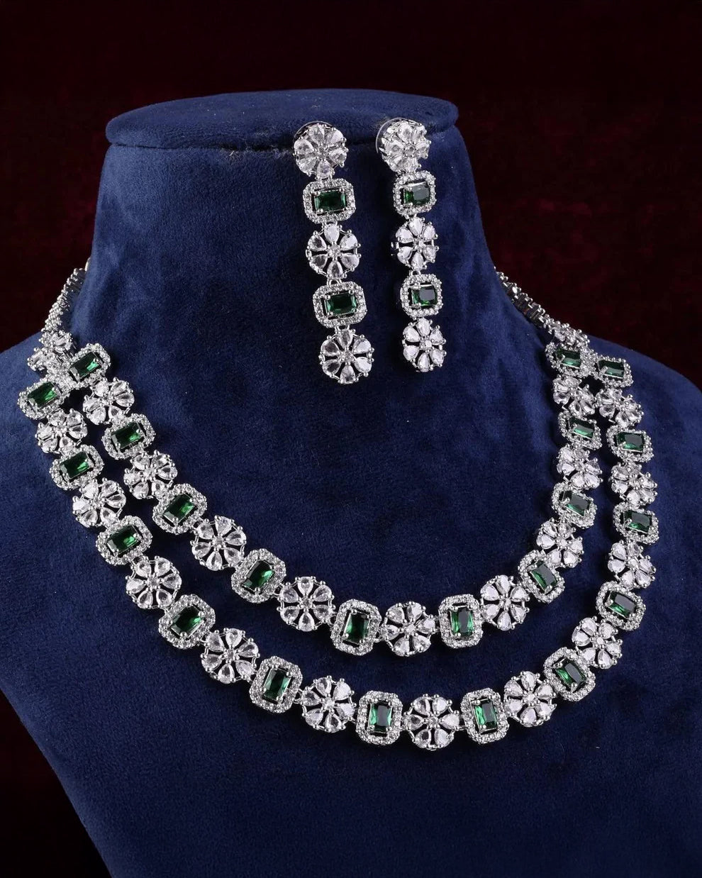 Emerald Salina 2 Layer American Diamond Necklace Set