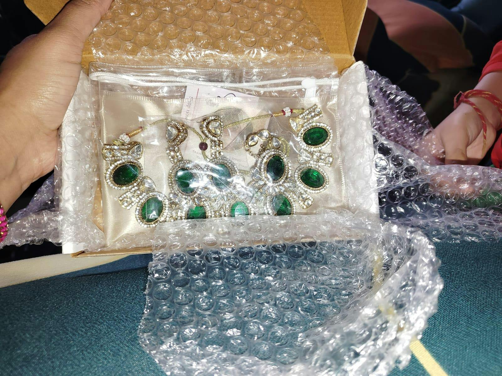 Emerald Taruja Premium Polki Dupe Necklace with Earring and Mangteeka