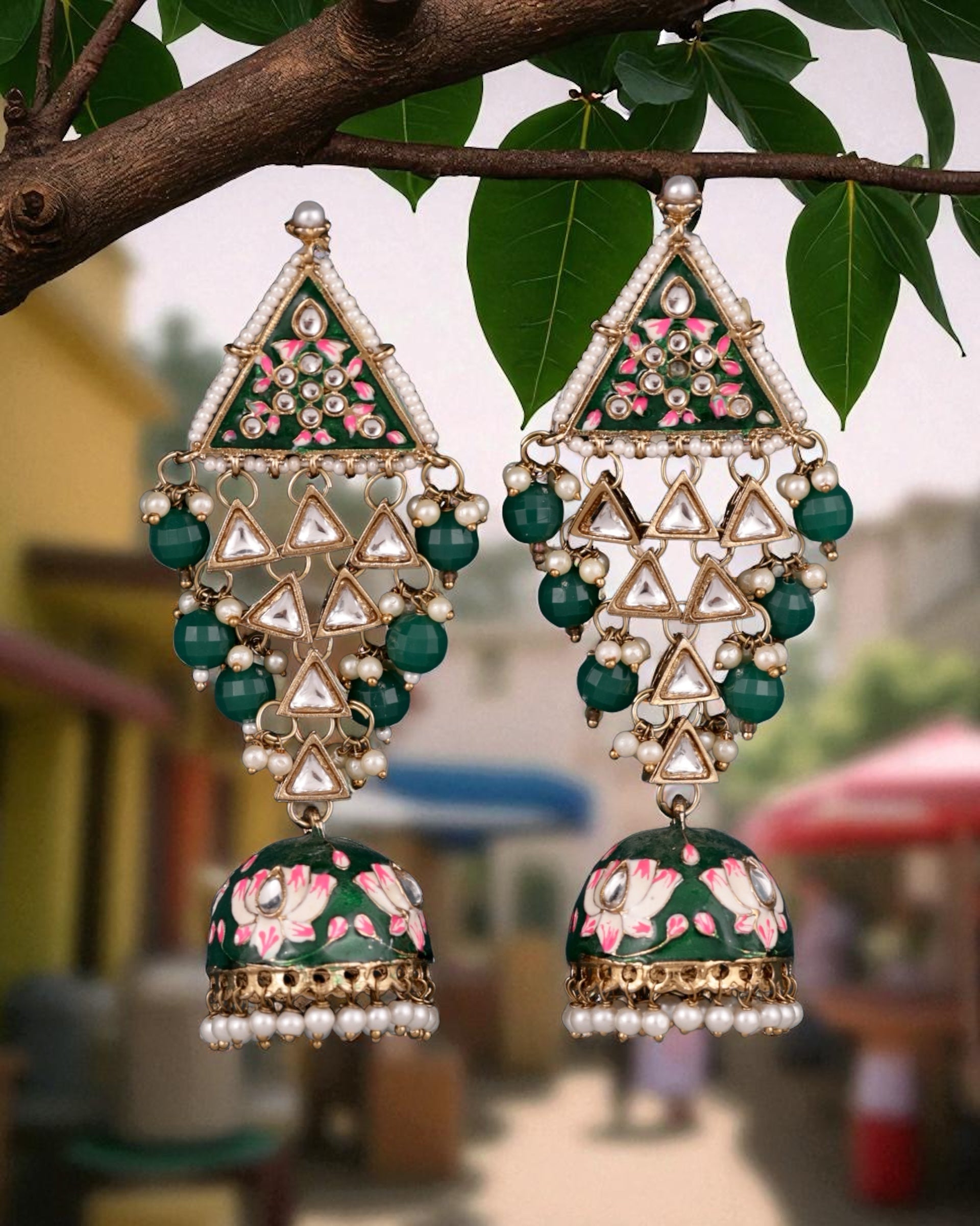 Emerald Tisha Meenakari Jhumka