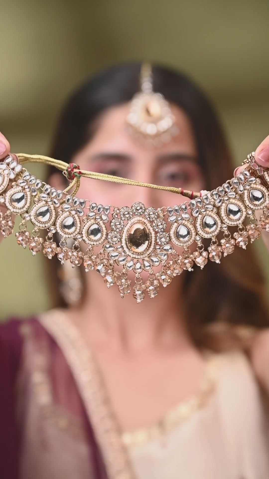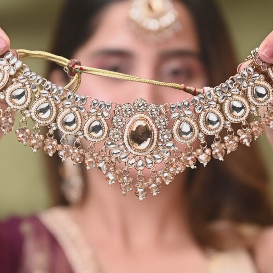 Gold Kavisha Premium Polki Dupe Necklace Set with Earring and Teeka