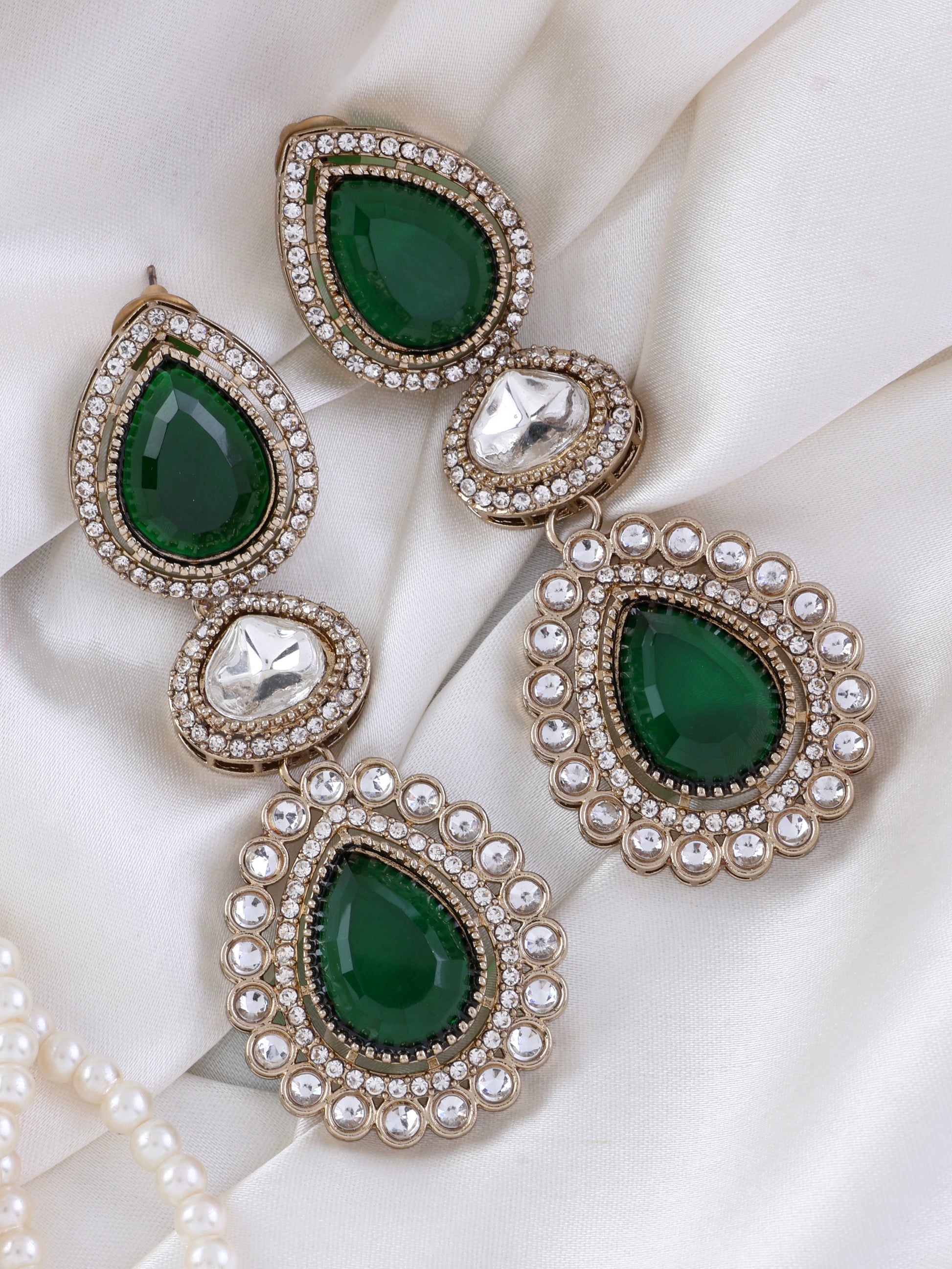 Green Amani Premium Designer Zircone Polki Dupe Earring