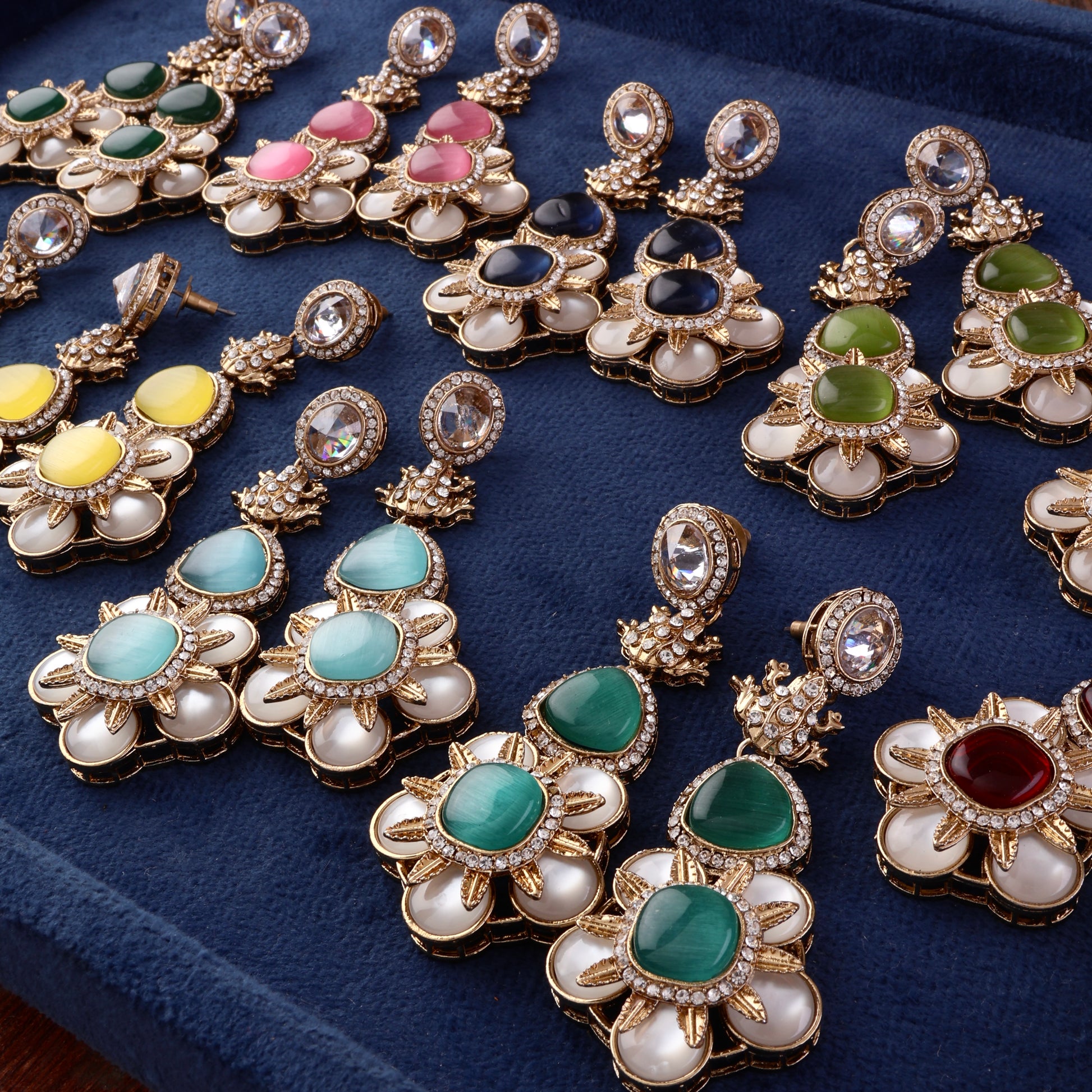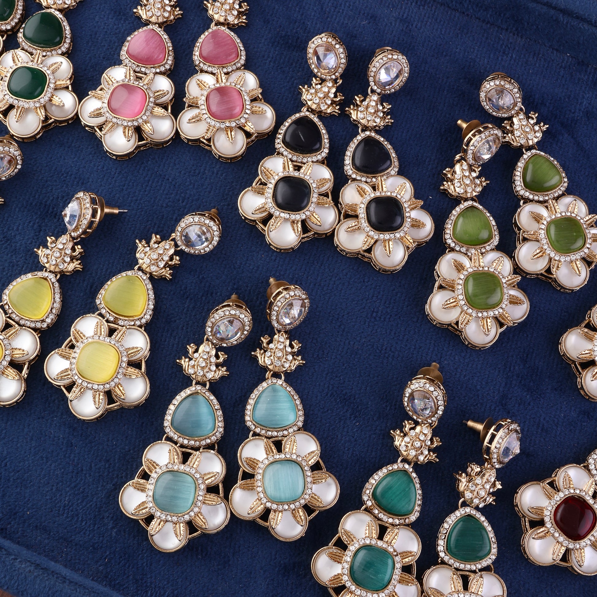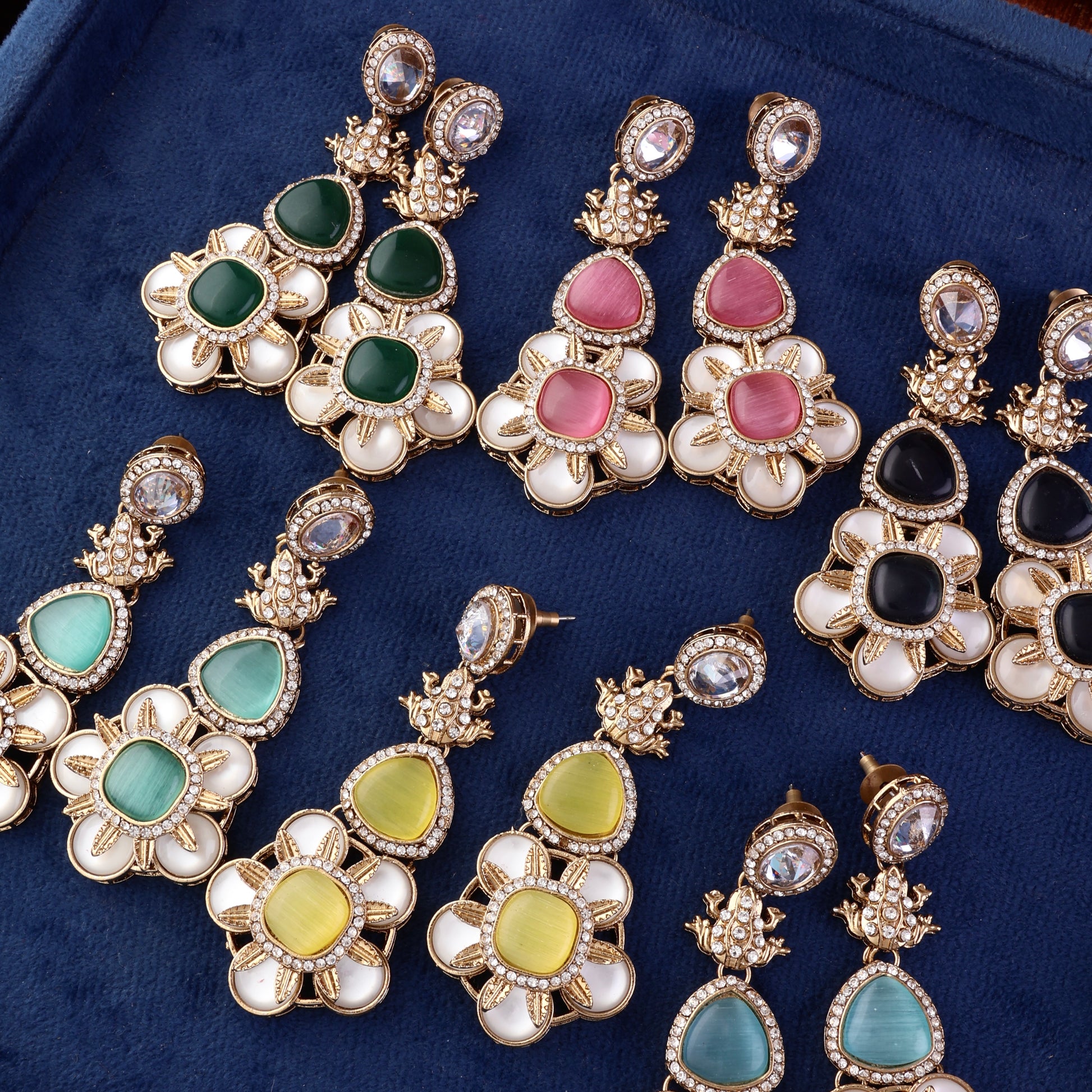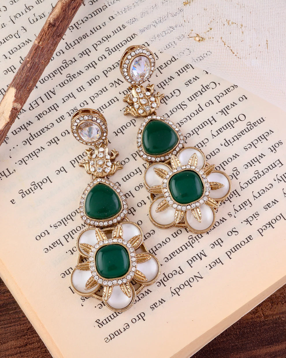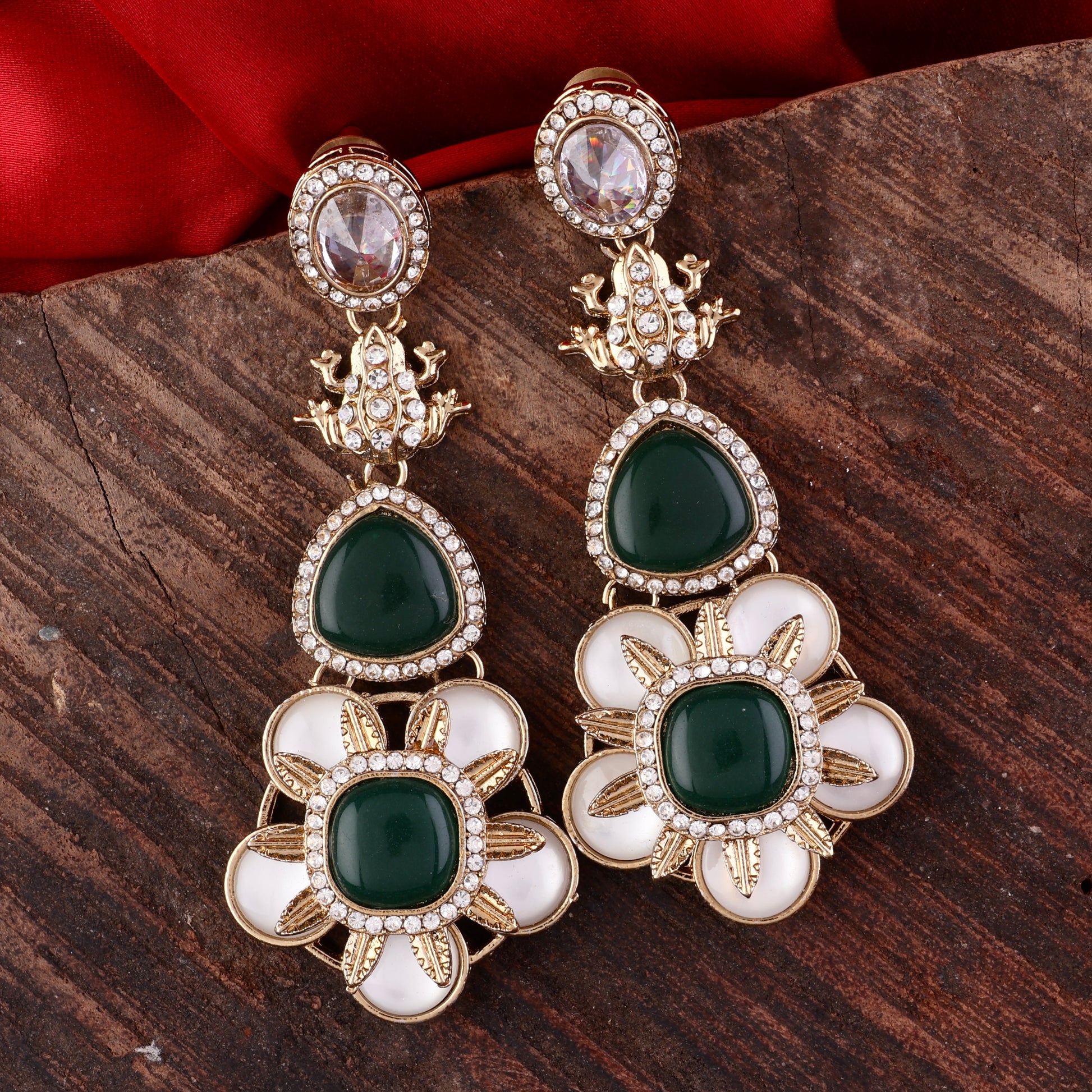 Green Asher Designer Earring with Premium Monalisa and Zircone Stone Detailing