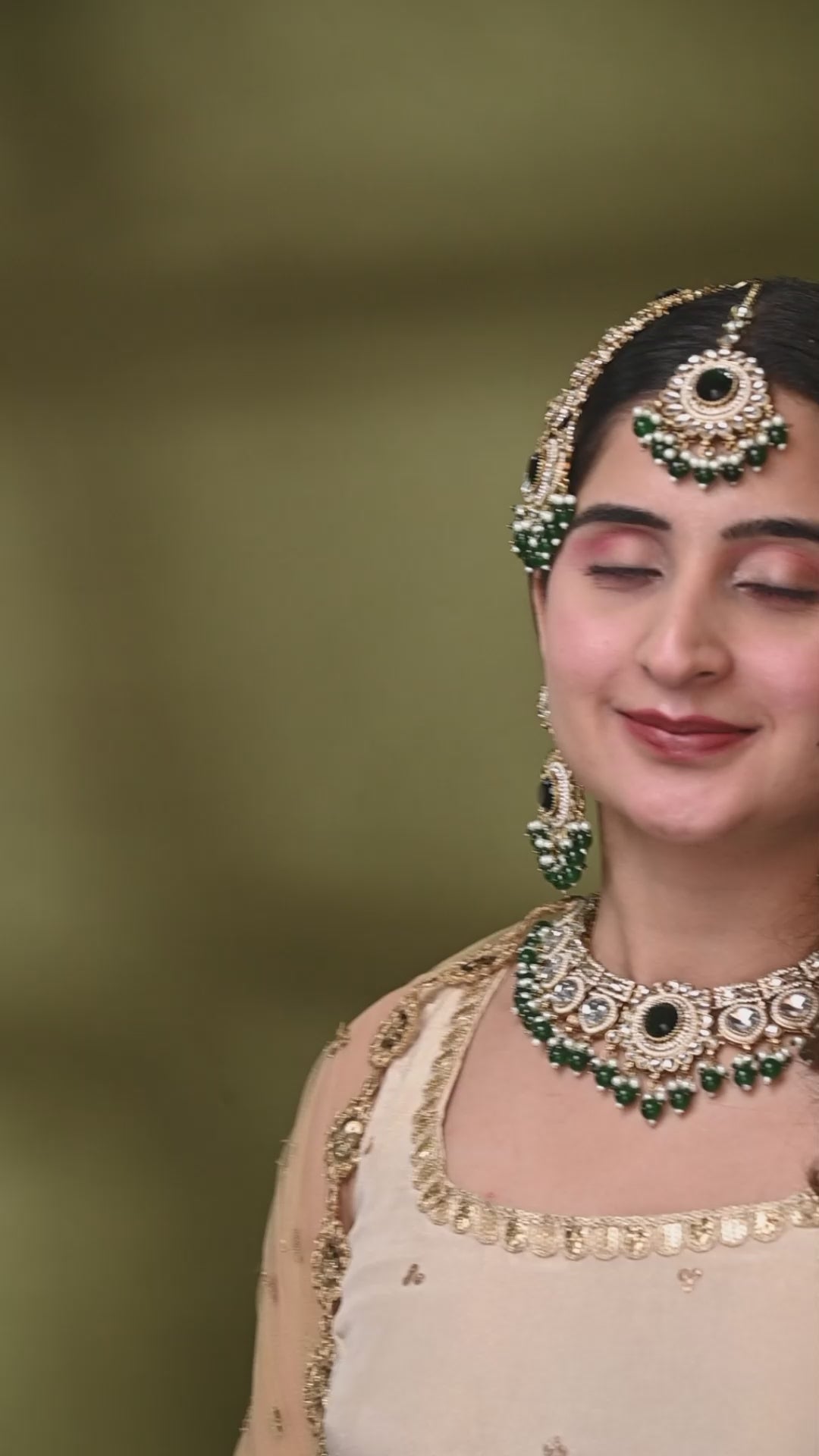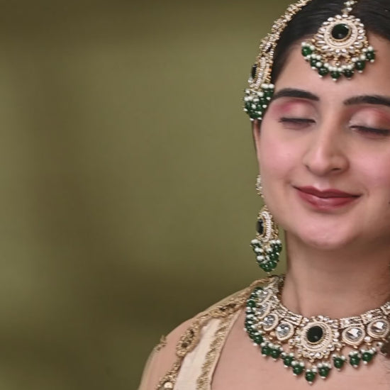 Green Laviza Premium Polki Dupe Necklace Earring with Teeka and Side Jhumar/Passa
