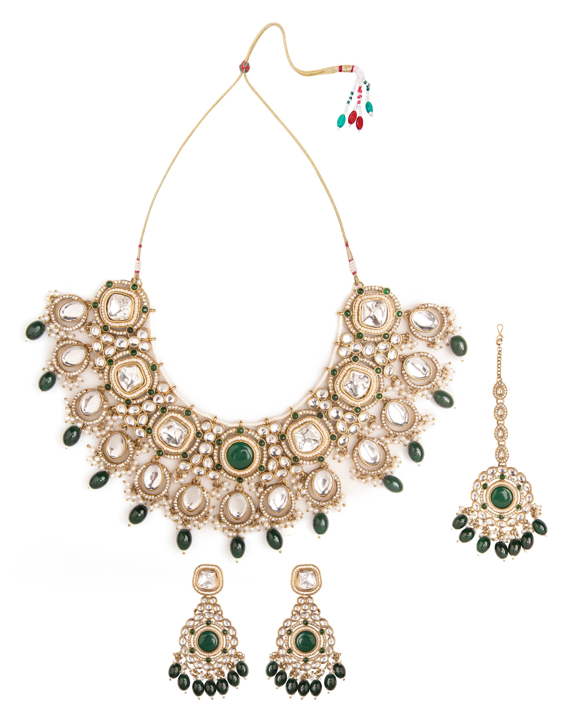 Green Noorpreet Premium Necklace with Earring and Mangteeka