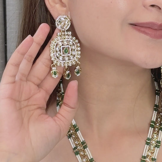 Green Shivangi Premium Long Necklace With Earring & Teeka