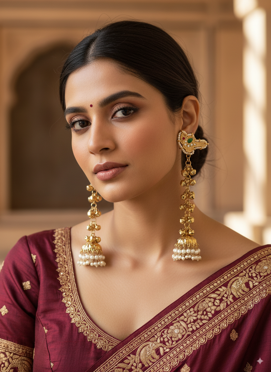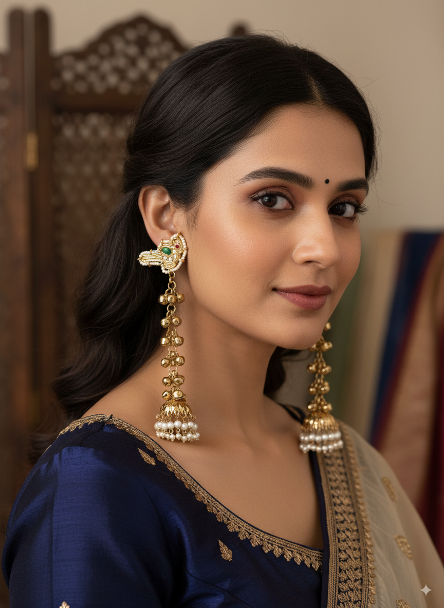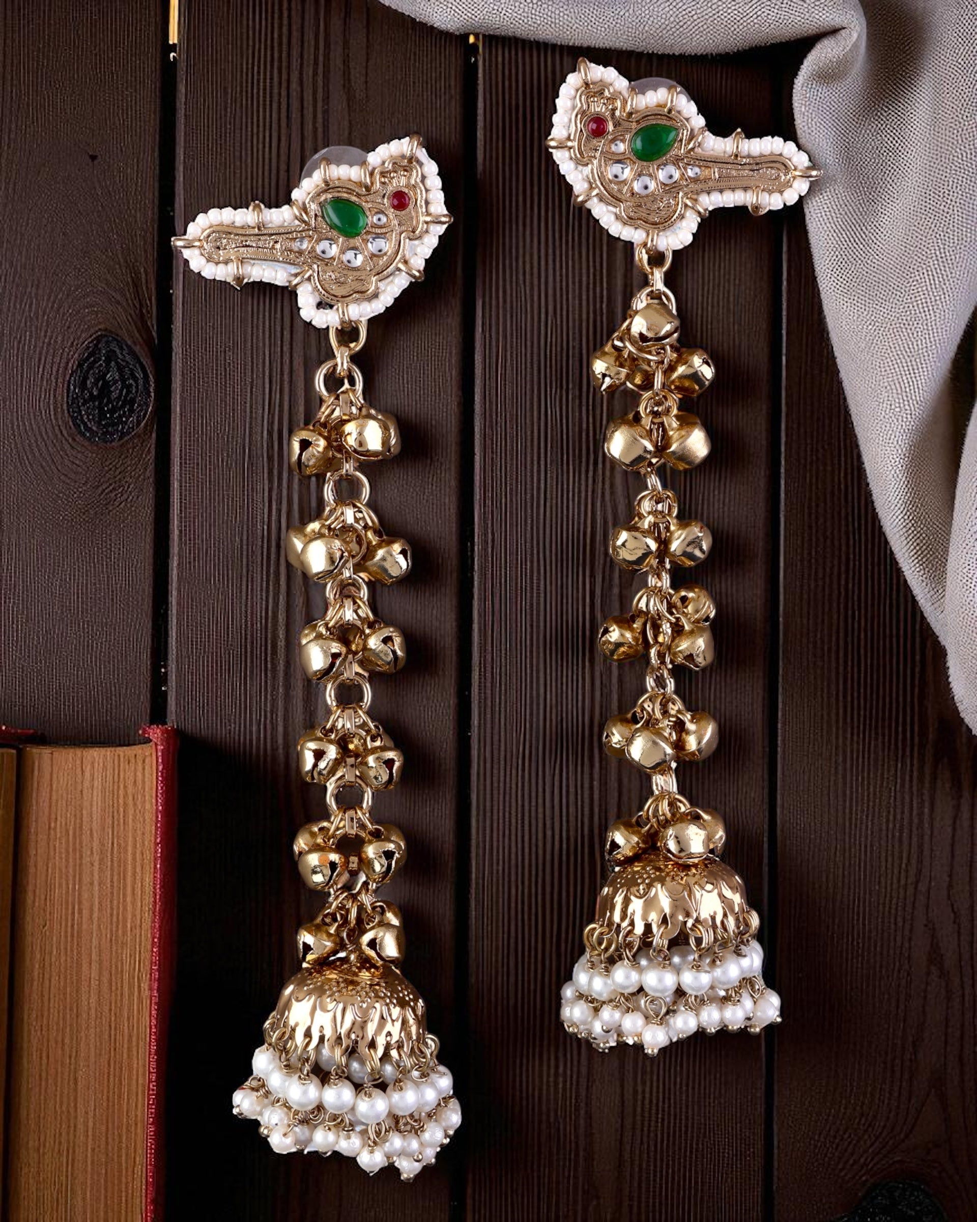 Green Sumbul Kashmiri Look Ghunghru Jhumka Earring