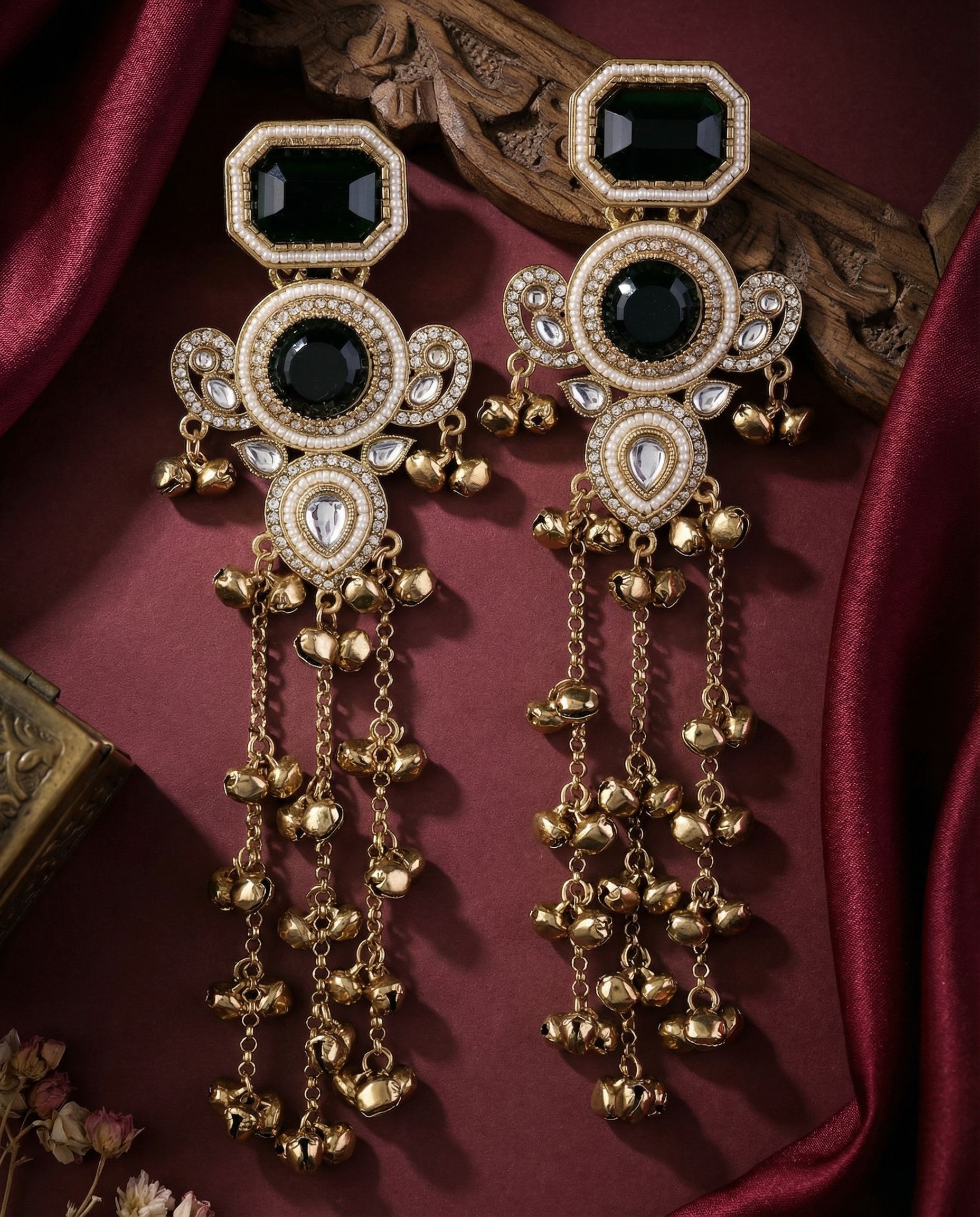 Green Zavian Kashmiri Look Ghunghru Jhumka Earring
