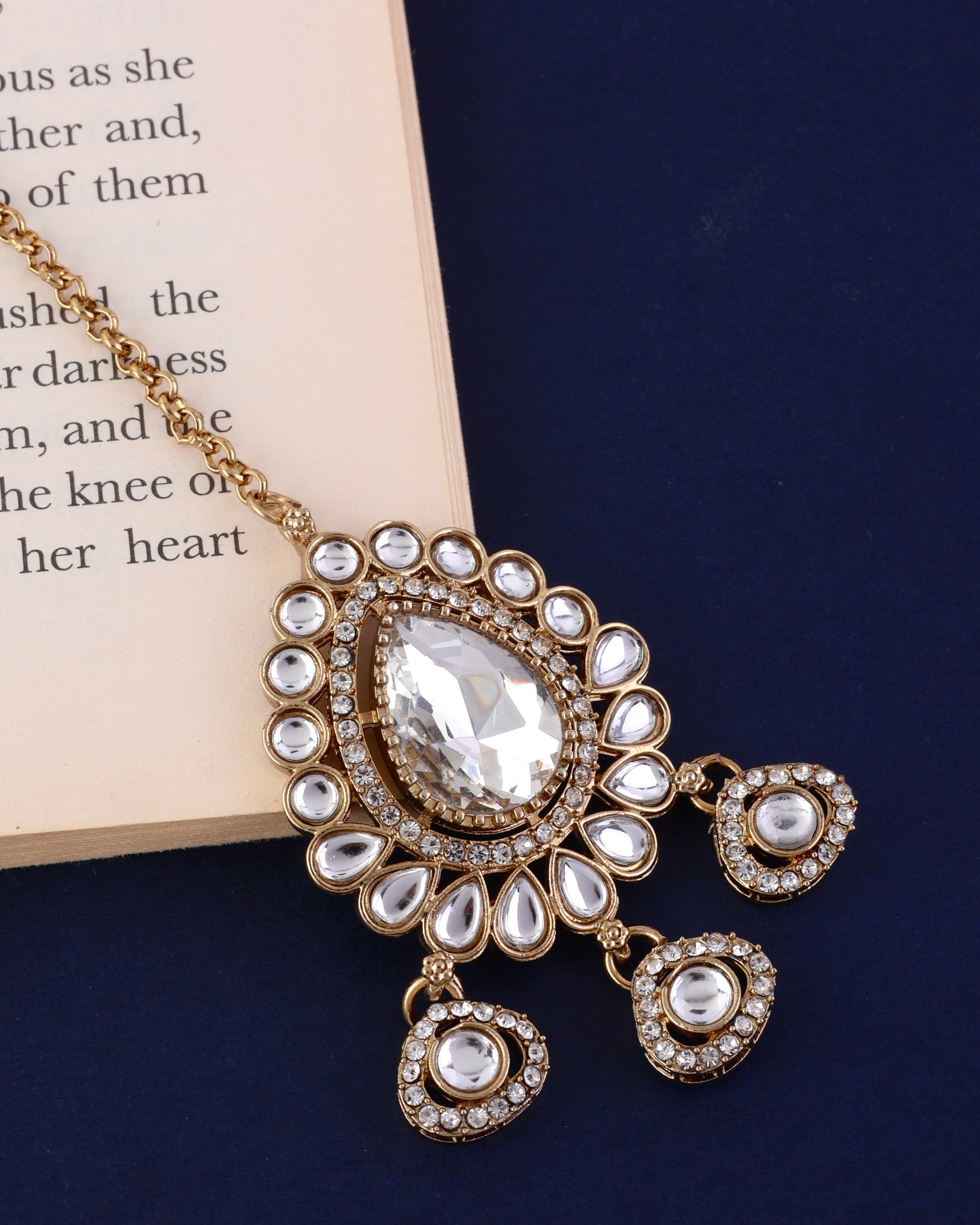 Gurveer Premium Zircone Kundan Pearl Mangteeka