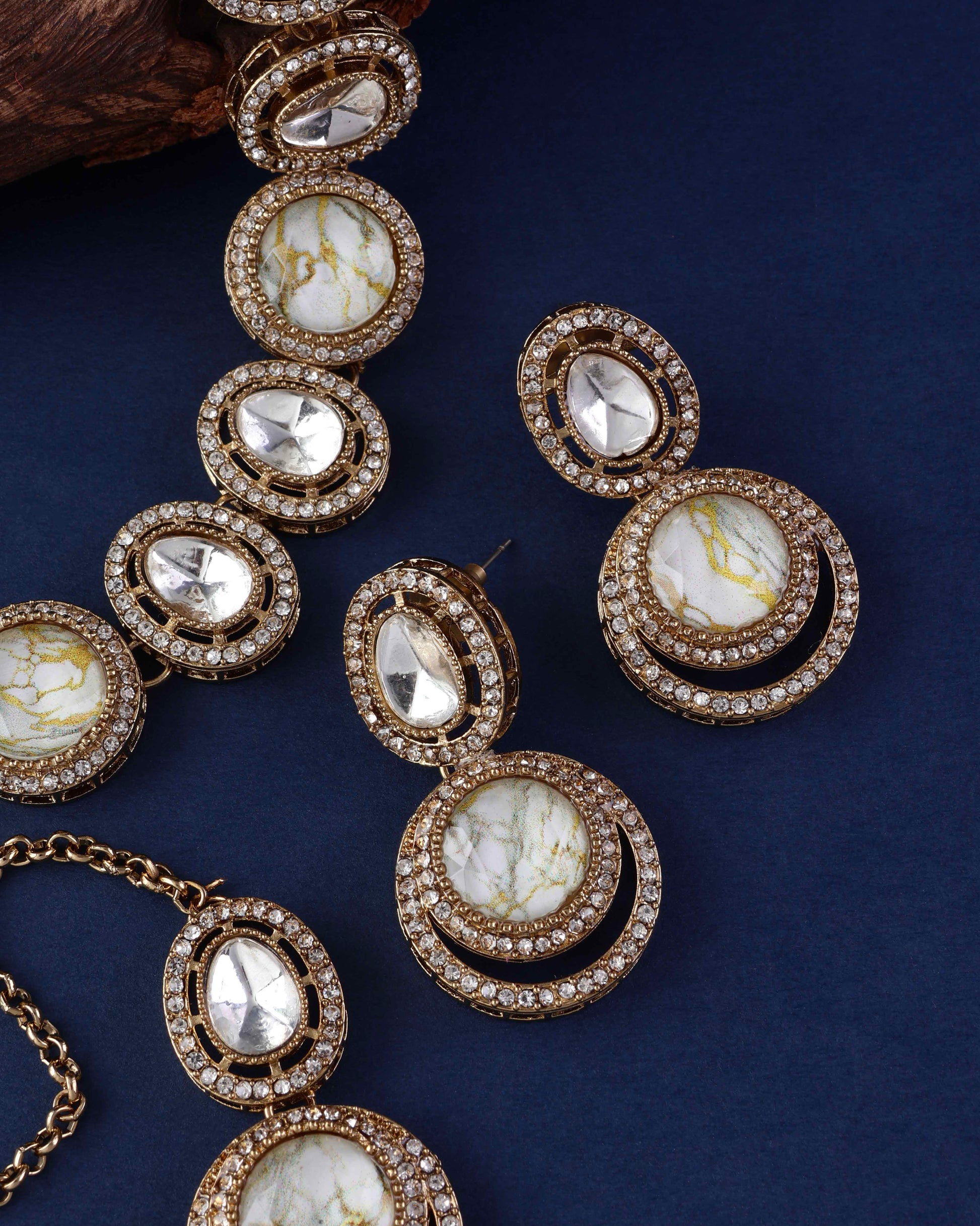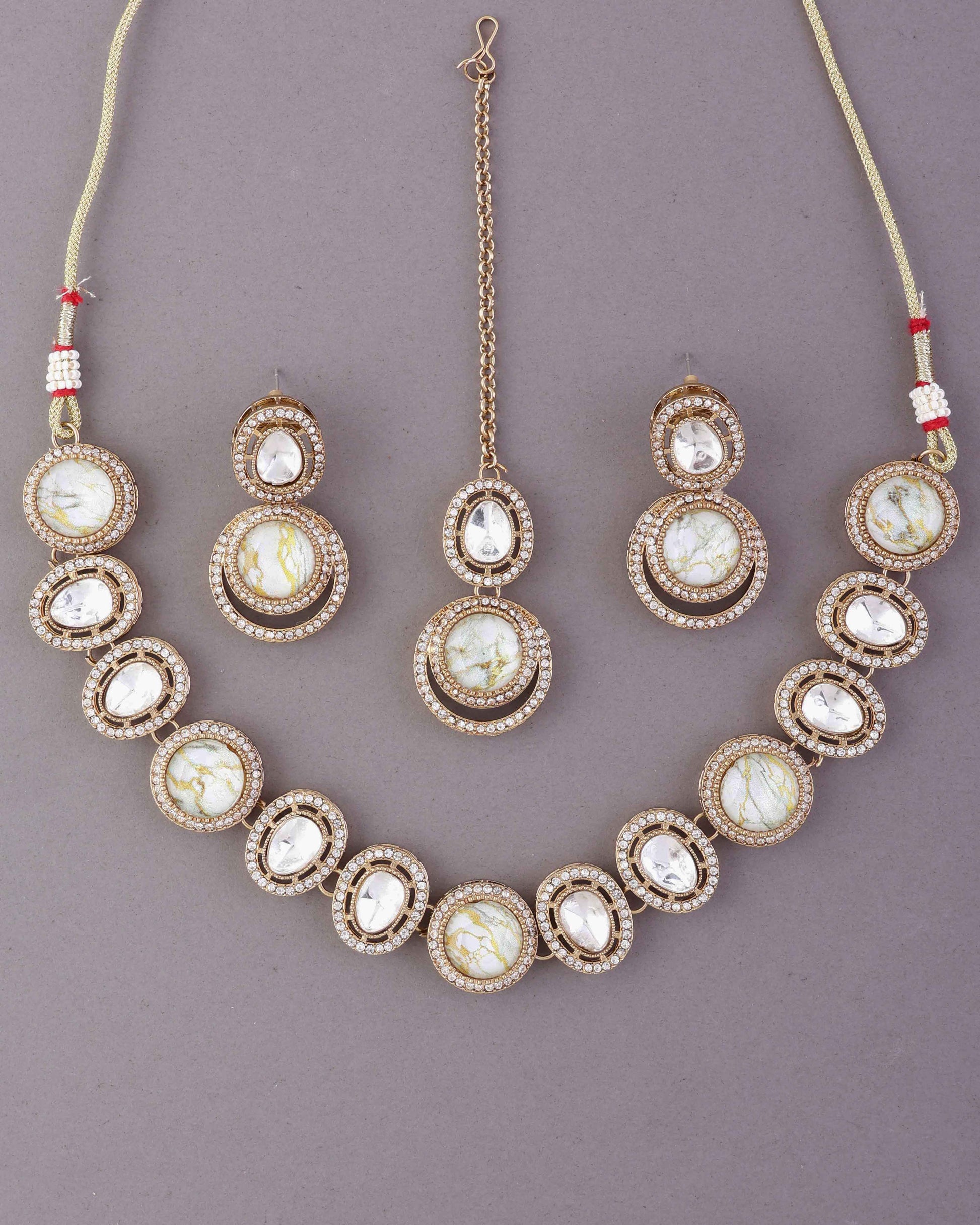 Ivory Abir Premium Polki Dupe Necklace with Earring and Teeka