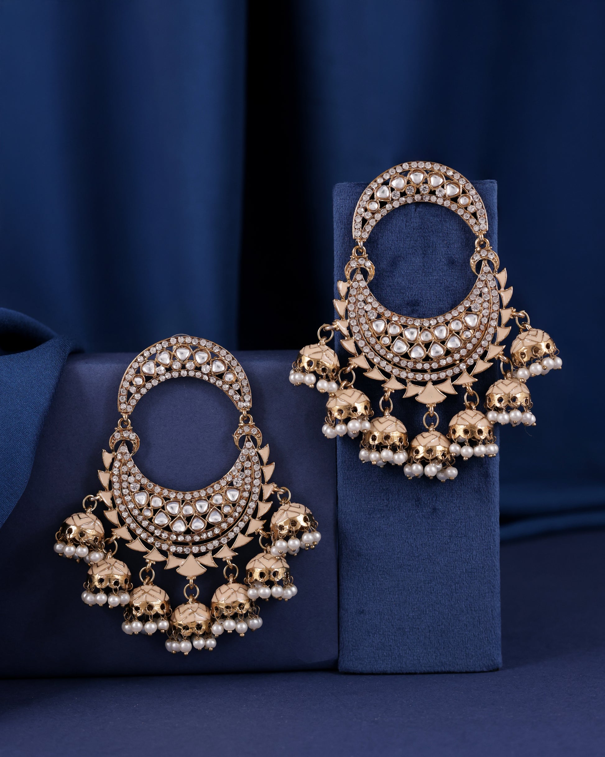 Ivory Anvika Desginer Meenakari Chandbali Jhumki Earring