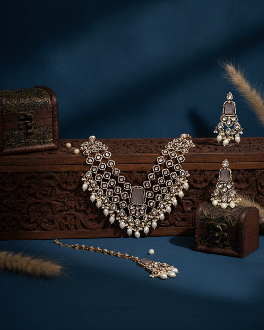Ivory Arizona Premium Monalisa Layered Necklace Set with Earring and Teeka
