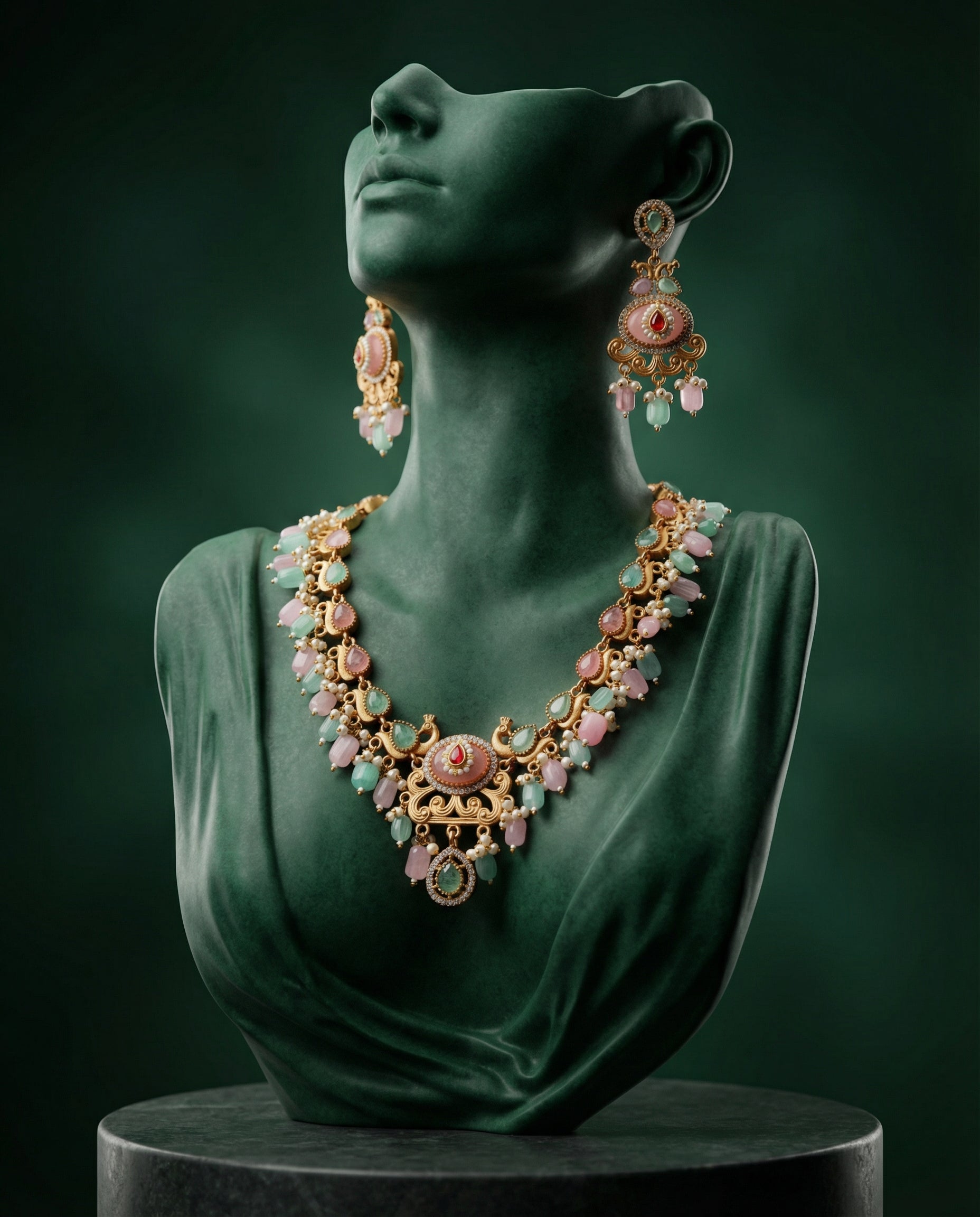 Blush Pastel Maheshwari Rajwada Necklace Set with Earring
