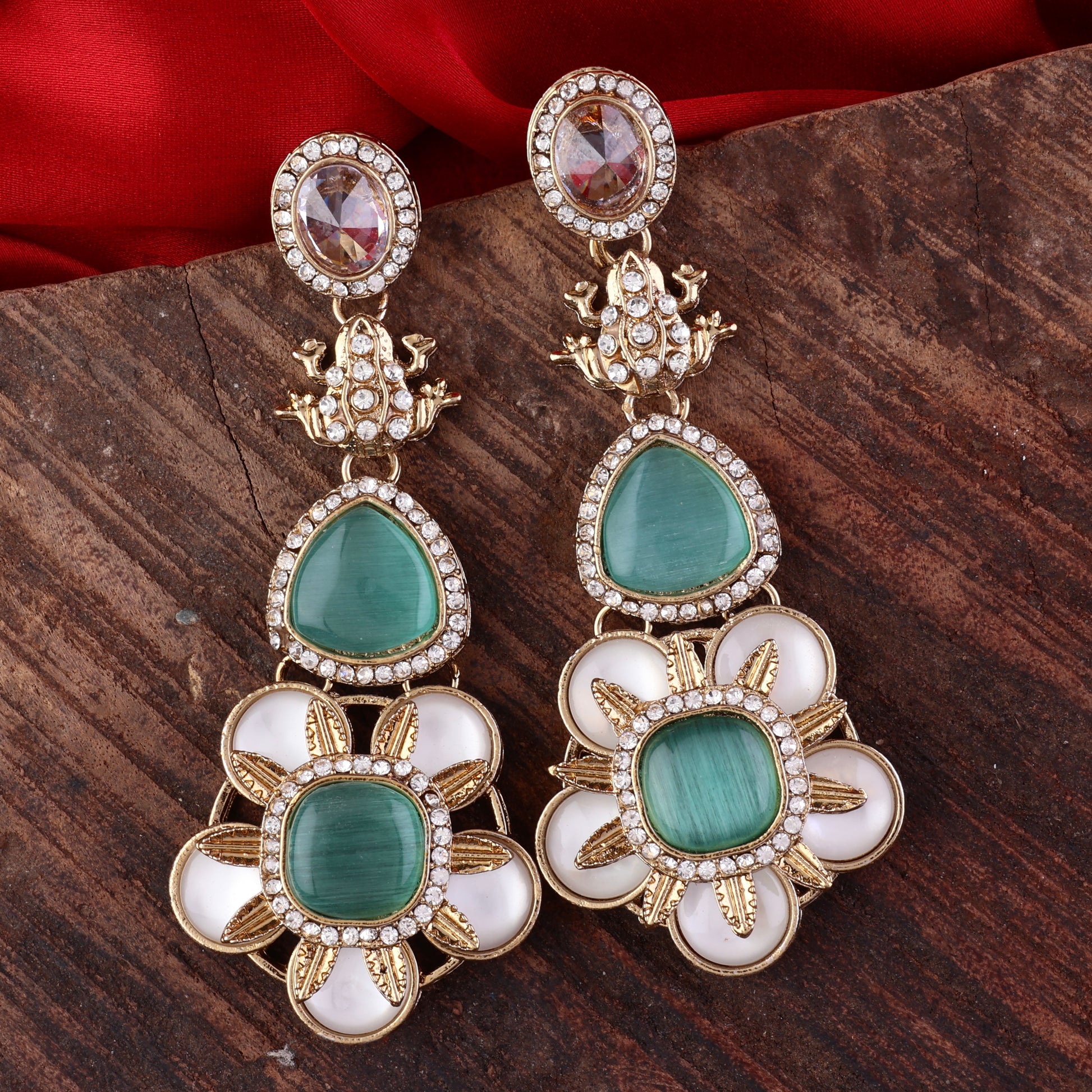 Mint Green Asher Designer Earring with Premium Monalisa and Zircone Stone Detailing