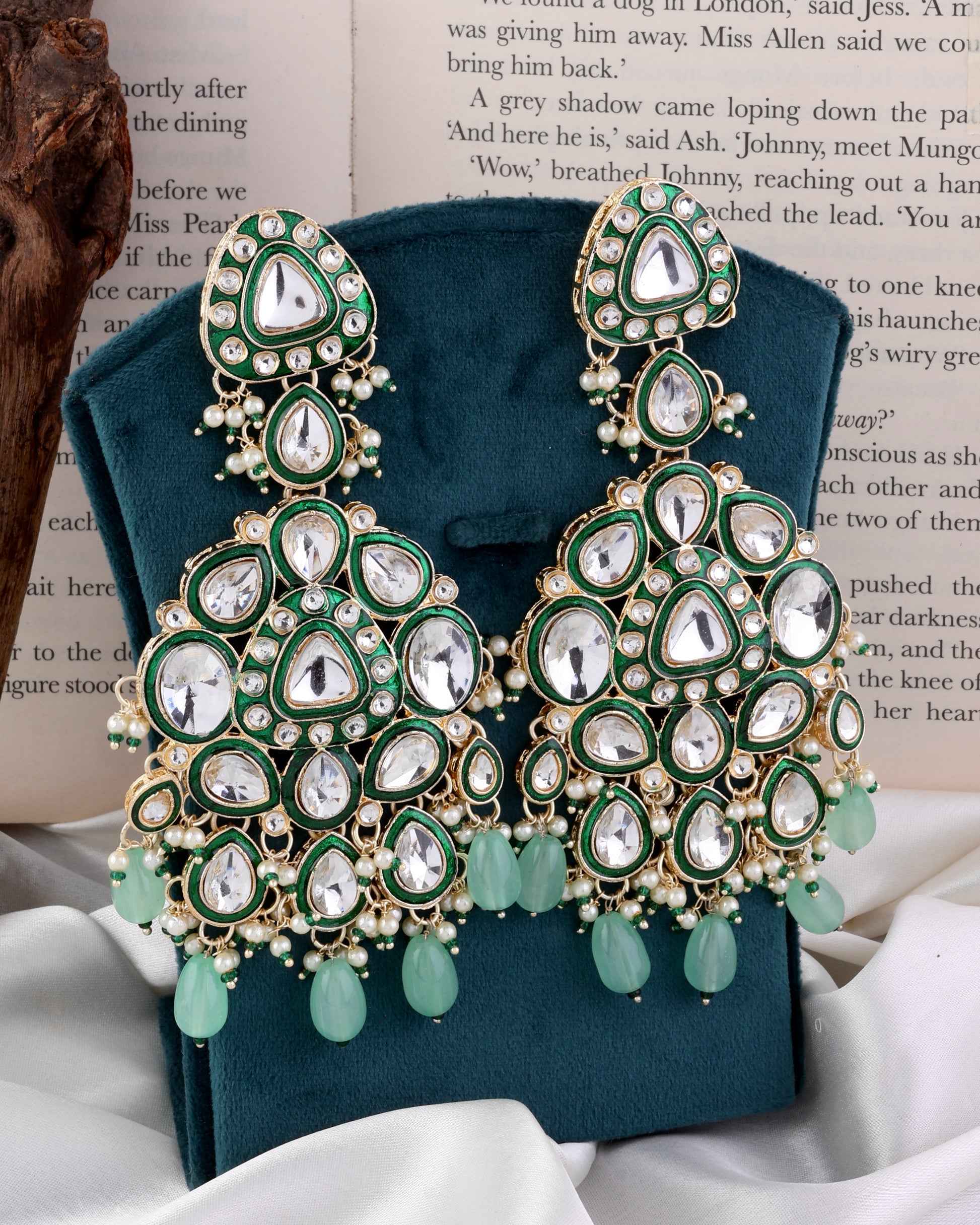 Mint Green Idhaya Designer Meenakari Chandbali Earring