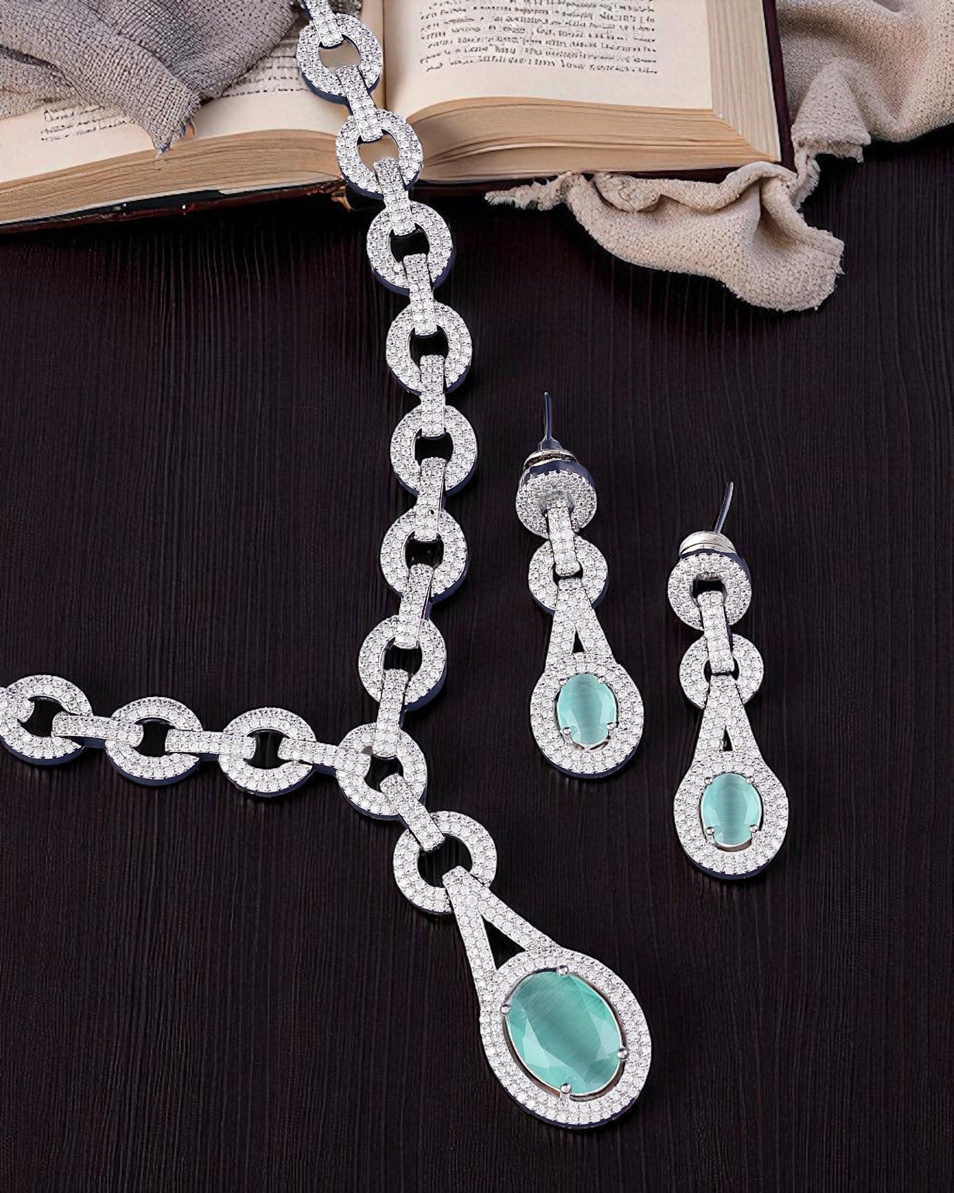 Mint Green Isabella American Diamond Necklace Set