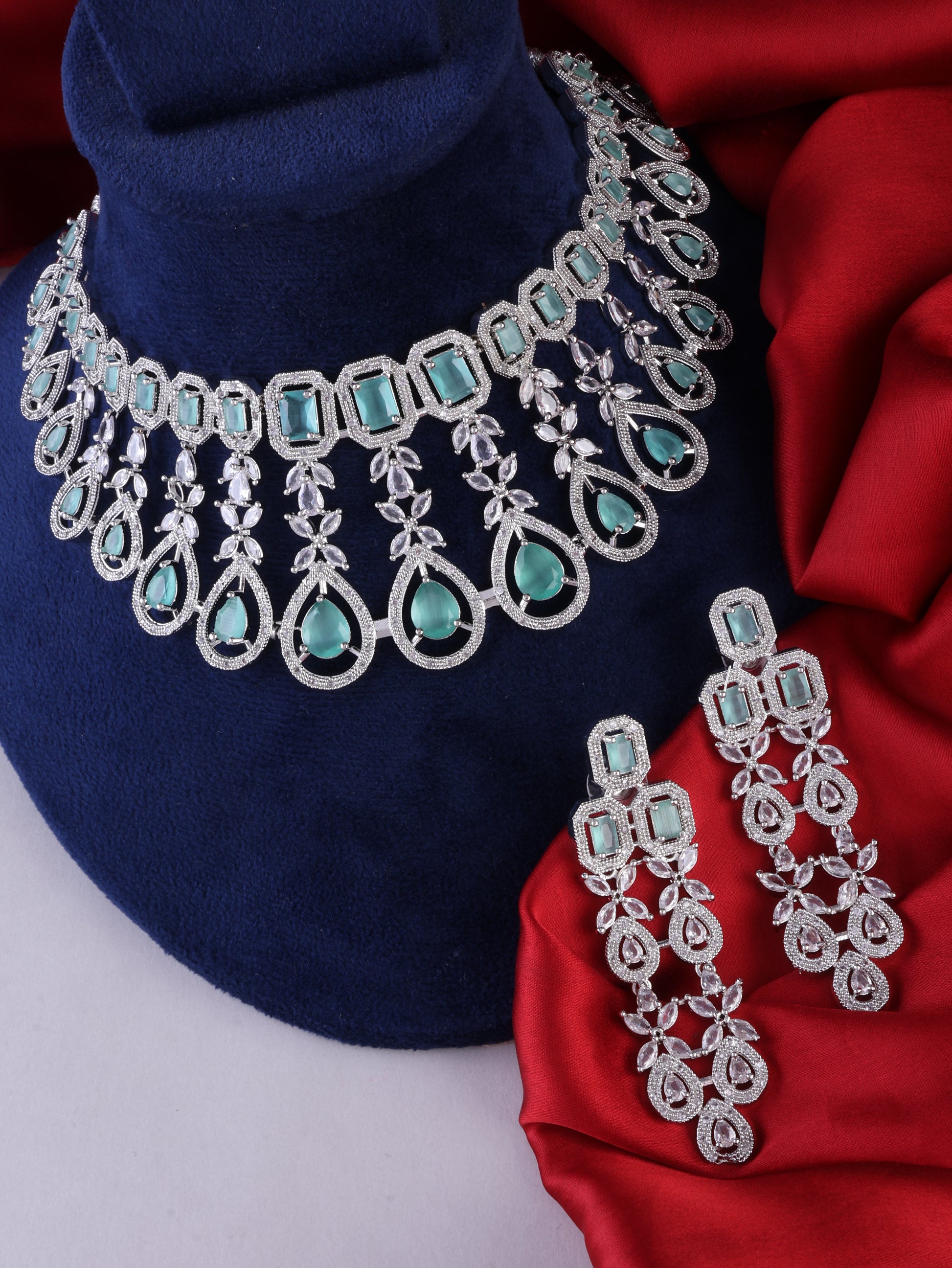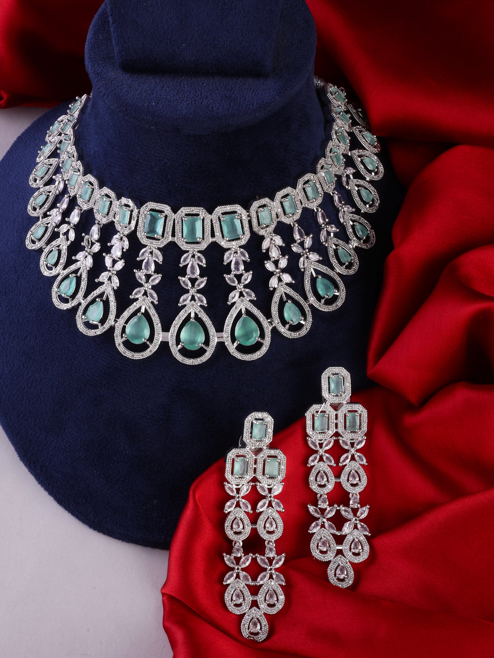 Mint Green Melissa American Diamond Necklace Set