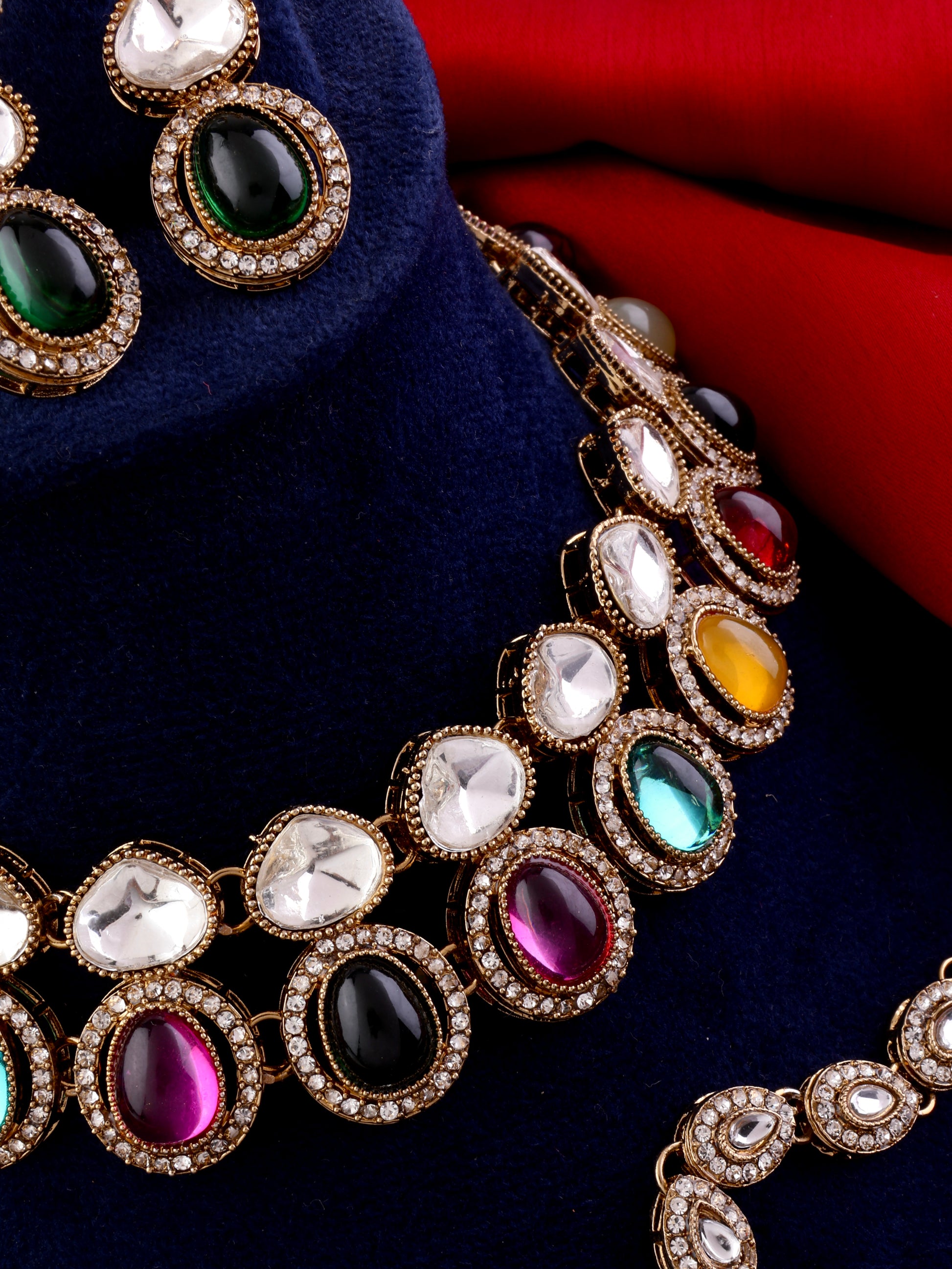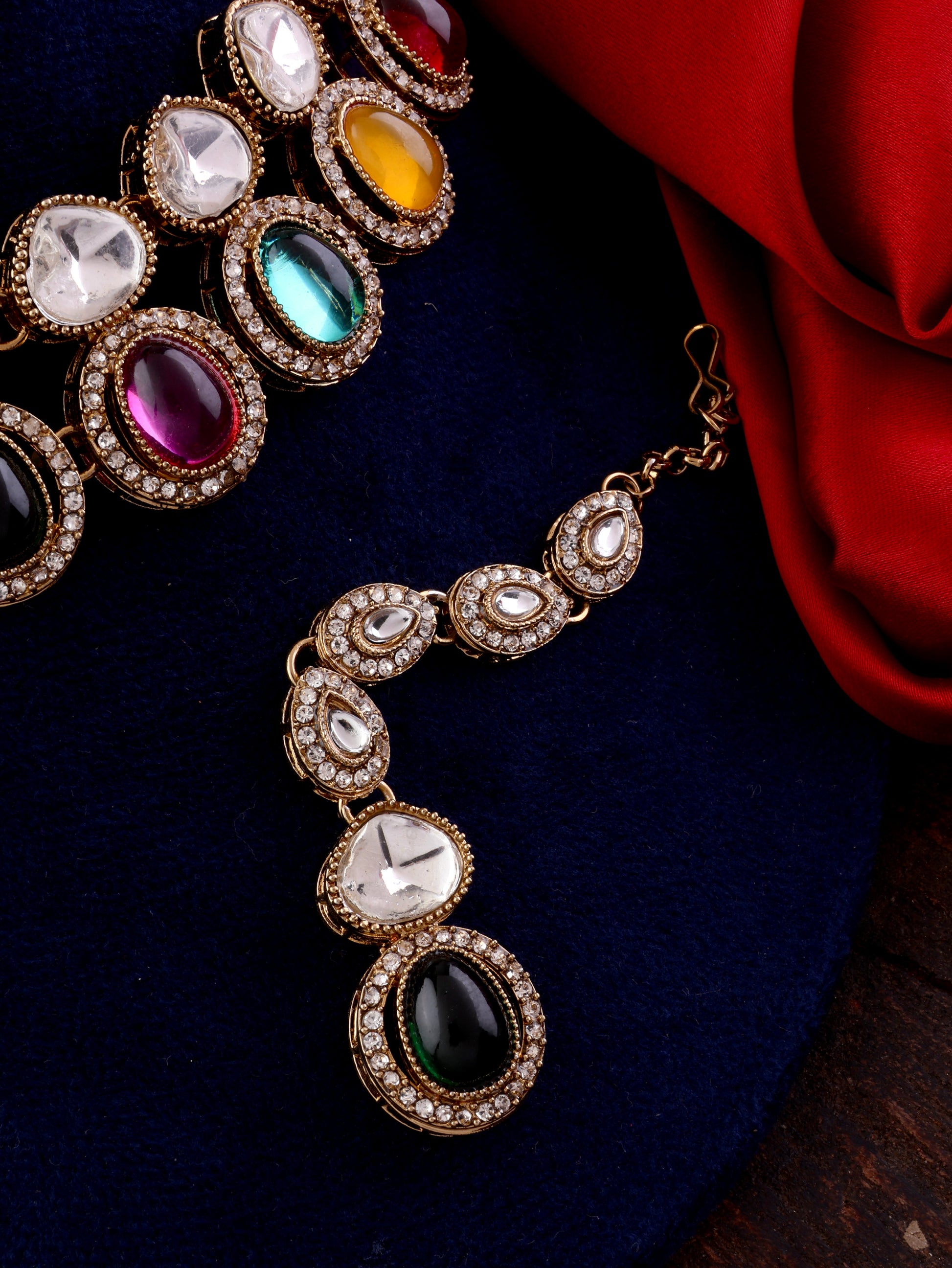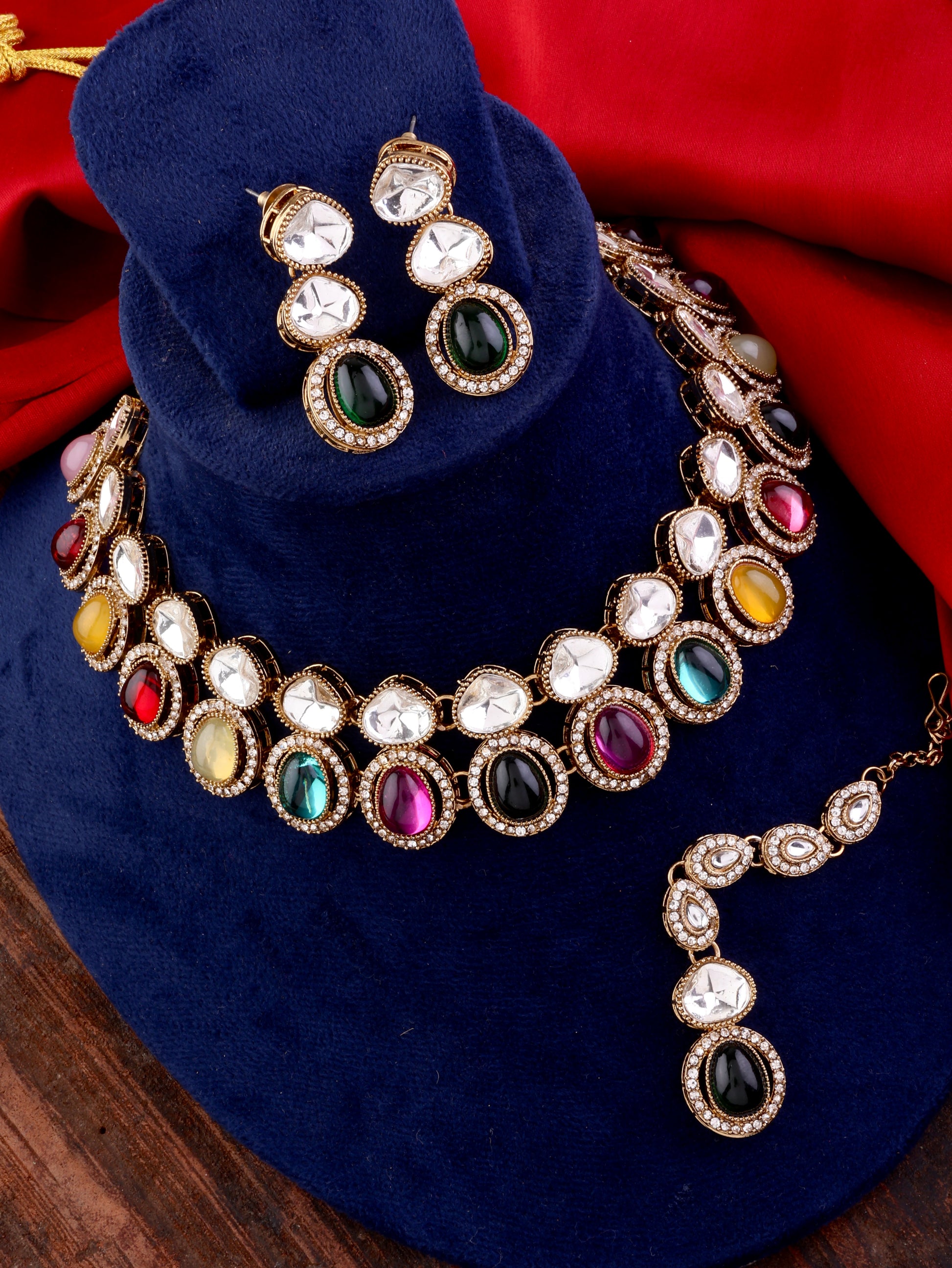 Multi Arshiya Premium Polki Dupe Necklace with Earring and Teeka