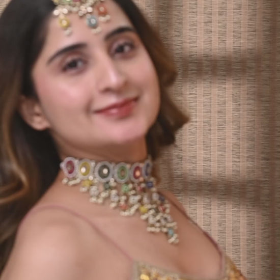 Multi Ravya Kundan Necklace Set With Earring and Mangteeka