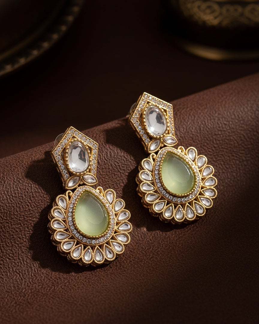 Olive Dikshika Premium Designer Zircone Polki Dupe Earring