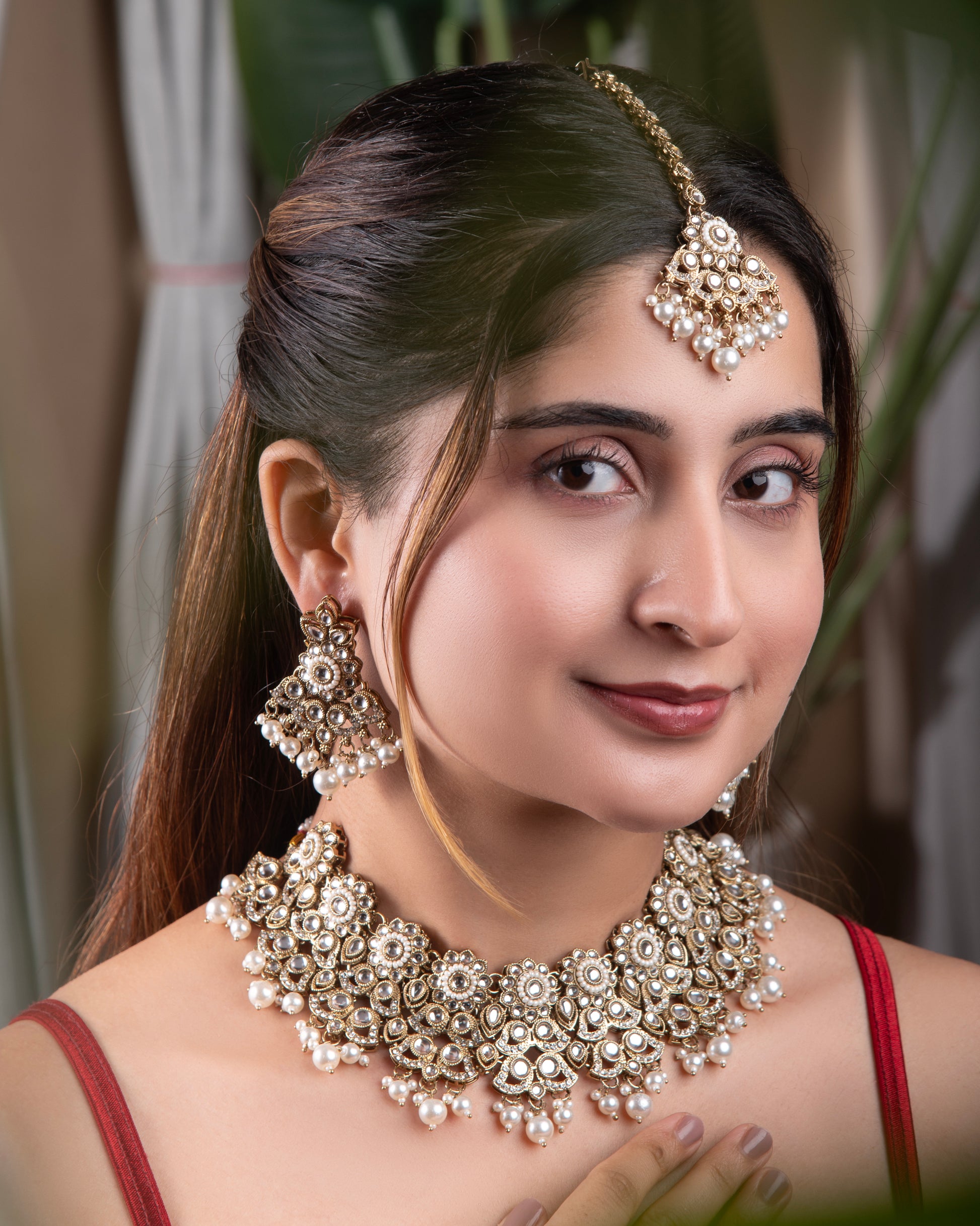 Pearl Mahvika Premium Necklace with Earring and Teeka