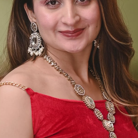 Pearl Naavir Premium Polki Dupe Long Necklace with Earring and Teeka